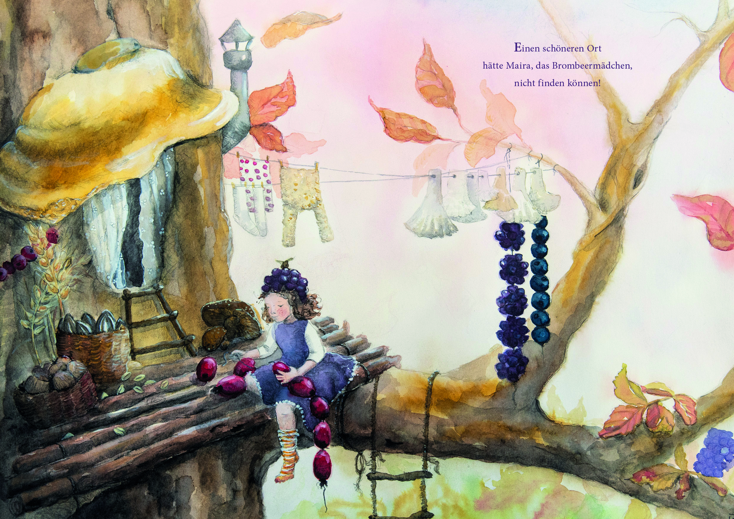 Maira, das Brombeermädchen, lebt in einer märchenhaften Welt irgendwo zwischen Bäumen und Brombeerranken. Im Herbst genießt sie die letzten warmen Sonnenstrahlen in ihrem Nest. Was für ein gemütliches und geborgenes Zuhause! Doch Schutz und Wärme werden mit dem ersten Herbststurm weggeweht und Maira findet sich verloren am Waldboden wieder. Wohin jetzt nur?