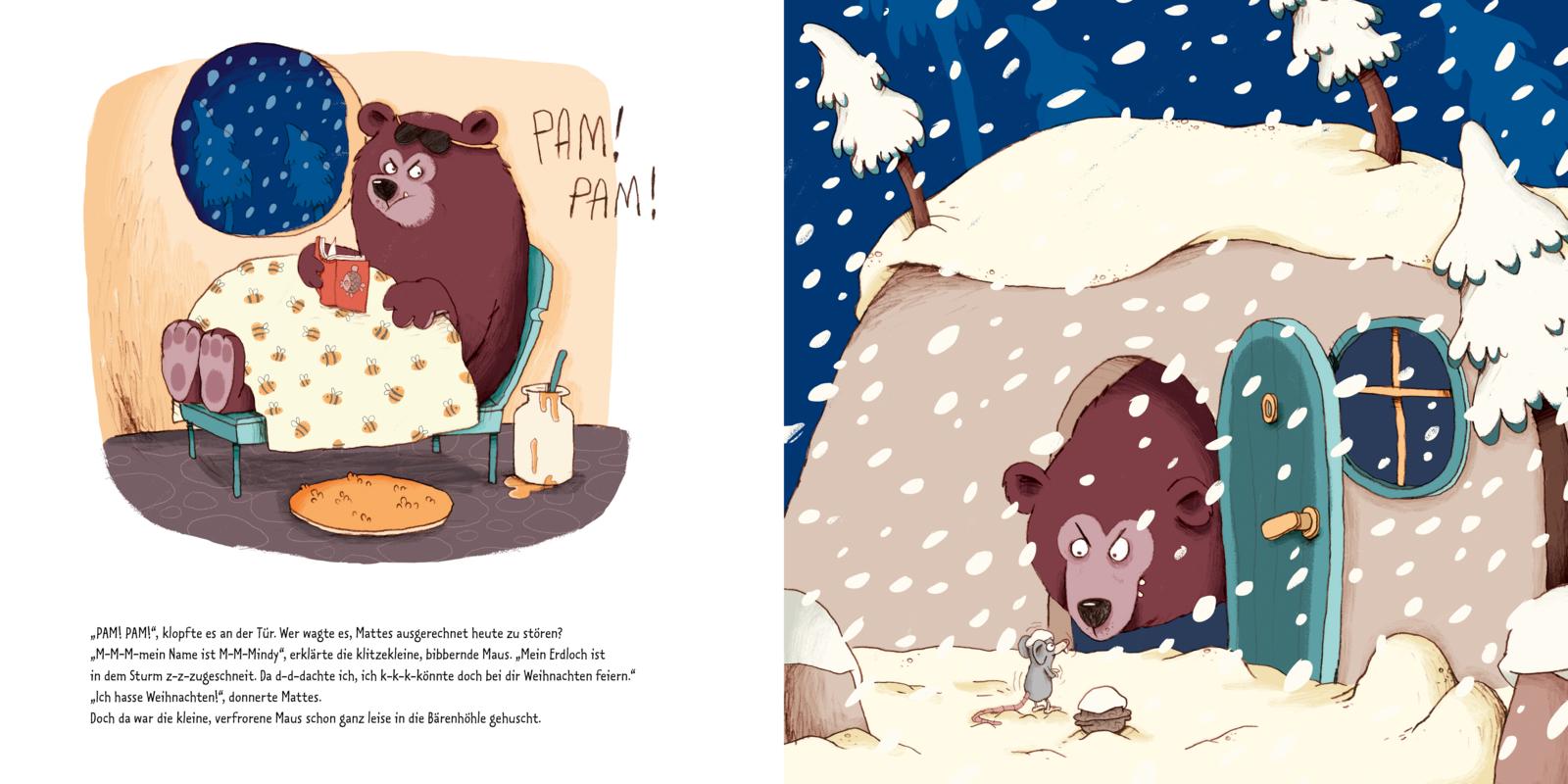 Der mürrische Bär Mattes kann Weihnachten nicht ausstehen. Doch ausgerechnet an Heiligabend klopft ein Tier nach dem anderen an seine Höhlentür. Die kleine Maus, Familie Hirsch, zwei Kaninchen und sogar eine ganze Waschbär-Bande - alle suchen Zuflucht und haben auch noch allerhand Weihnachtsklimbim im Gepäck. Ob dieses Fest noch zu retten ist?