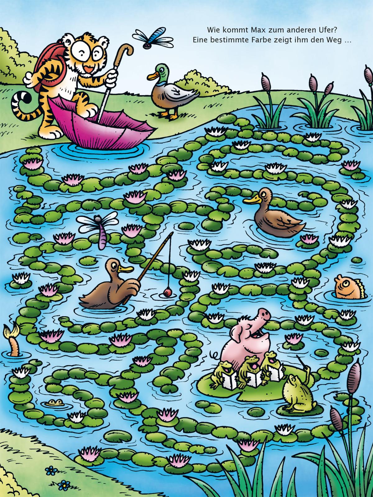 Für den Extraspaß beim Knobeln sorgen liebevoll gestaltete Ausmalseiten und über 40 tolle Sticker.