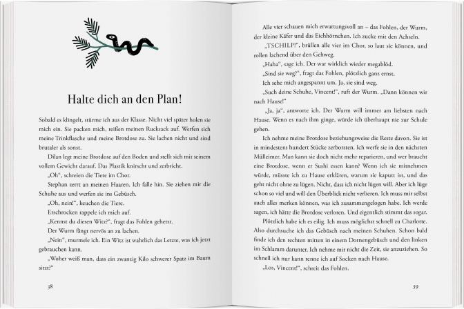 Vincent ist elf Jahre alt und er weiß alles über das Überleben in der Wildnis. Sein Lieblingsbuch ist das große Survival-Handbuch, er kennt es fast auswendig. Ums Überleben geht es für ihn auch täglich in der Schule, denn er wird von den anderen schikaniert. Und nun steht die Klassenfahrt bevor. Einziger Lichtblick ist die neue Mitschülerin Jacqueline, genannt "Die Jacke". Sie spricht vier Sprachen, surft, spielt E-Gitarre. Sie ist überhaupt ziemlich cool und sie scheint Vincent zu mögen. Auf der Klassenfahrt läuft die Situation dann völlig aus dem Ruder. Mitten in der Nacht findet sich Vincent allein im stockdunklen Wald wieder ... Eine spannende und berührende Geschichte übers Normal- und Anderssein, Mobbing und über das tägliche Überleben.