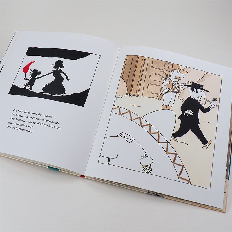 Jeden Morgen reitet Roy auf seinem Pferd Desperado in den Kindergarten - voller Vorfreude. Doch eines Tages ist alles anders: Der Kindergarten ist verwüstet, die Wippe kaputt, die Schaukel abgerissen. Der böse Bandit Black Bart hat die Erzieherin Heidi entführt! Sofort verfolgen Roy und Desperado seine Spur im Sand. Als geschickte Fährtenleser finden sie sogar sein geheimes Versteck. Aber können sie Heidi befreien? Roy wäre nicht der mutigste Reiter und Desperado nicht sein unerschrockenes Pferd, wenn sie nicht den besten Plan hätten. Mit Köpfchen und Pferdestärken schlagen sie Black Bart in die Flucht und bringen Heidi nach Hause. Was für ein Kindergarten-Abenteuer! Oder wie Roy sagen würde: eigentlich wie immer.