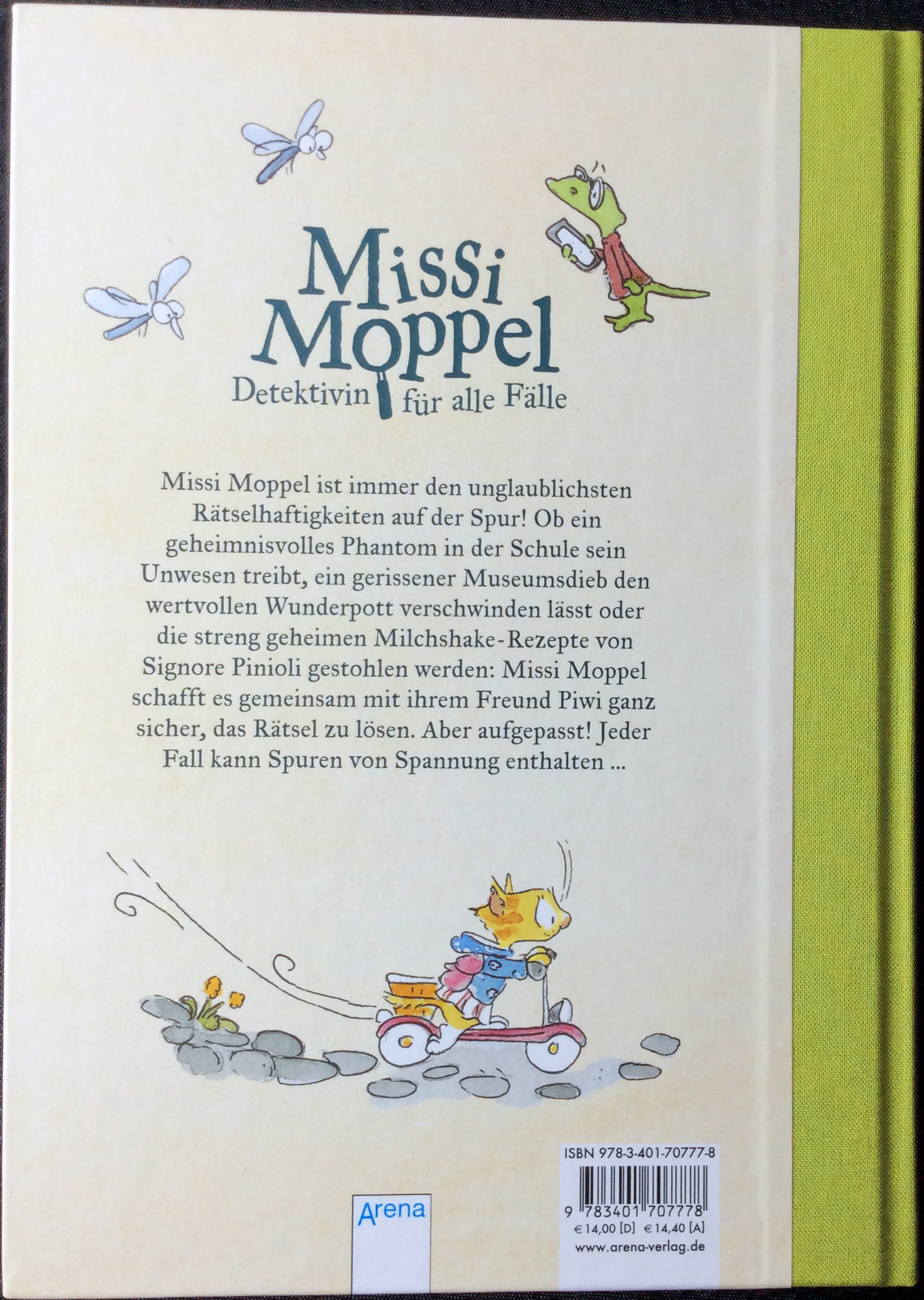 Missi Moppel löst die kniffligsten Fälle, garantiert! Ob ein geheimnisvolles Phantom in der Schule sein Unwesen treibt, ein gerissener Museumsdieb den wertvollen Wunderpott verschwinden lässt oder die streng geheimen Milchshake-Rezepte von Signore Pinioli verschwinden: Missi Moppel schafft es gemeinsam mit ihrem Freund Piwi ganz sicher, das Rätsel zu knacken. Aber aufgepasst! Jeder Fall kann Spuren von Spannung enthalten ...