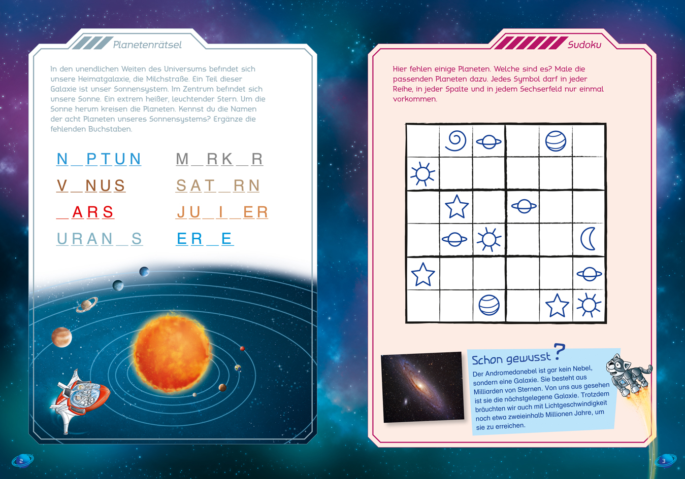 | Schlagworte | ab 7 Jahre • Abenteuer • Astronaut • Der kleine Major Tom • Erde • Fenstersticker • Freundschaft • Gefahr • Gefährlich • Jupiter • Mars • Merkur • Neptun • Planeten • Plutinchen • Rätsel • Rätselheft • Rätselspaß • Raumstation • Saturn • Space Racer • Stella • Uranus • Venus • Weltall • Weltraum |