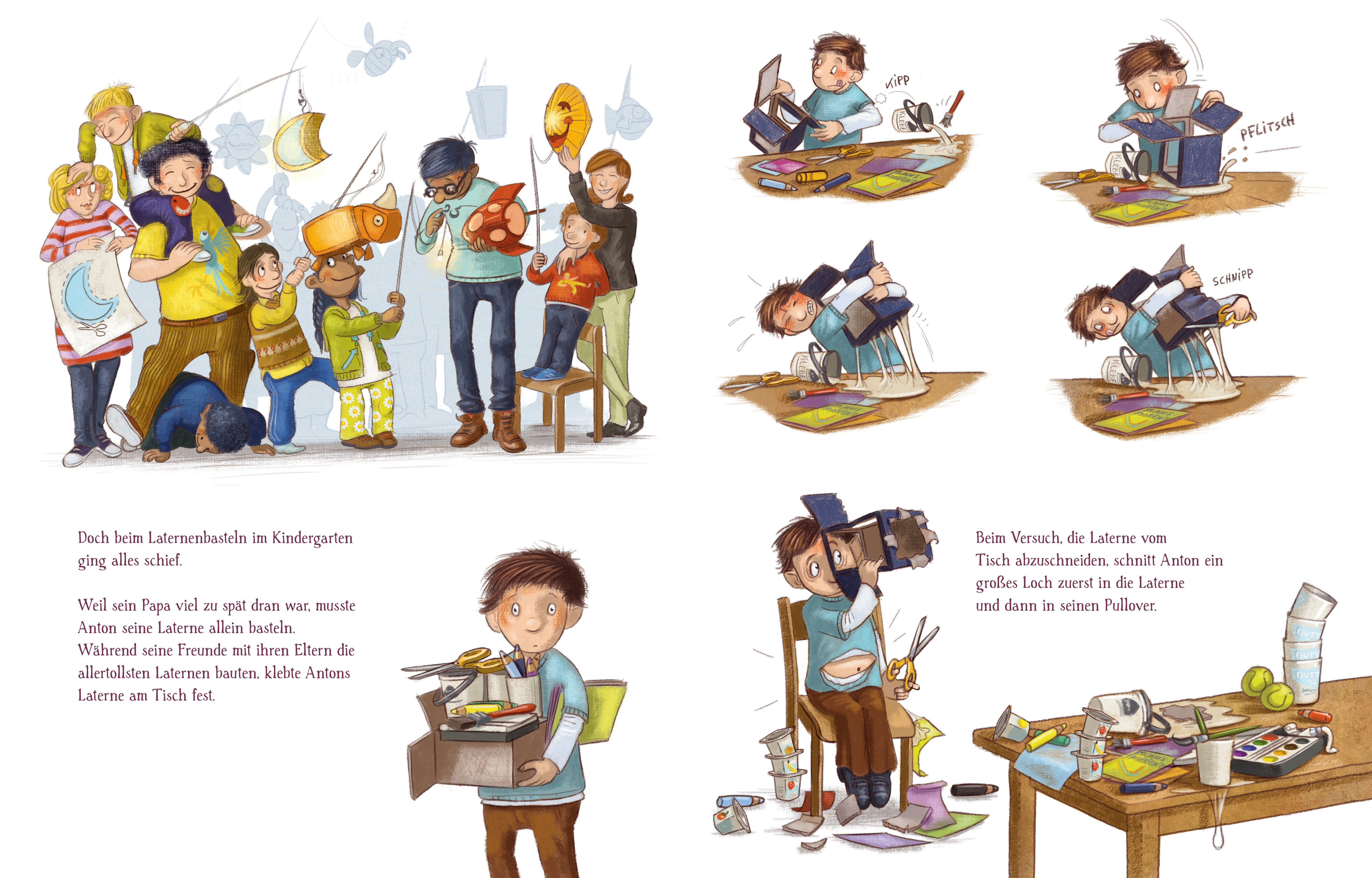 Ein zauberhaftes Bilderbuch über das Teilen - eine berührende Martinserzählung von heute. Laternenumzug mit Hindernissen Anton freut sich schon seit Tagen auf den Laternenumzug im Kindergarten. Aber dann läuft gar nichts so, wie es soll: Erst bastelt Anton versehentlich eine Monsterfanten-Laterne, dann klemmt Papa sie in der Autotür ein und beim Laternenumzug fällt sie in eine Pfütze und wird zu einem traurigen Klumpen Papier. Da kommt ihnen ein fremder Mann zu Hilfe und schenkt Anton eine ziemlich ungewöhnliche Laterne: gefertigt aus einer alten Dose. Der Mann heißt Martin, sagt er. Vielleicht war es sogar Sankt Martin?! Wer weiß ...