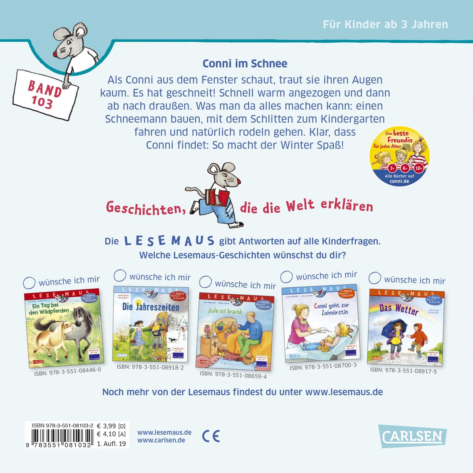 Als Conni aus dem Fenster schaut, traut sie ihren Augen kaum. Es hat geschneit! Schnell zieht sie Mütze, Schal und Handschuh an und dann ab nach draußen. Was man da alles machen kann: einen Schneemann bauen, mit dem Schlitten zum Kindergarten fahren, rodeln gehen und natürlich eine Schneeballschlacht. Klar, dass Conni findet: So macht der Winter Spaß!