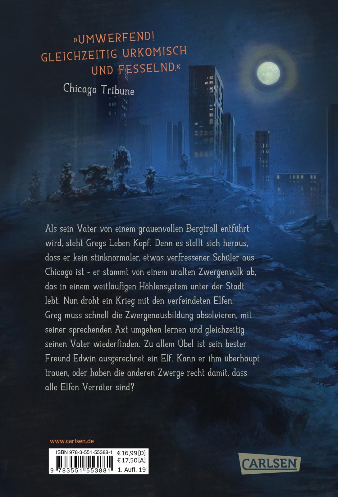 Als sein Vater von einem grauenvollen Bergtroll entführt wird, steht Gregs Leben Kopf. Denn anscheinend ist er kein stinknormaler, etwas verfressener Schüler - er stammt von einem uralten Zwergenvolk ab, das in einem Höhlensystem unter Chicago lebt. Nun droht ein Krieg mit den verfeindeten Elfen. Greg muss die Zwergenausbildung absolvieren, mit seiner sprechenden Axt umgehen lernen und gleichzeitig seinen Vater wiederfinden. Zu allem Übel ist sein bester Freund Edwin ausgerechnet ein Elf. Kann er ihm überhaupt trauen?