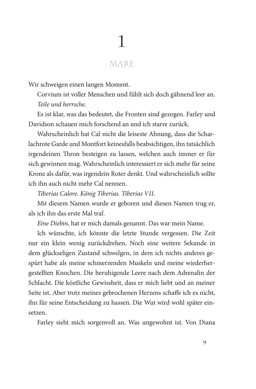Siege haben ihren Preis! Das weiß Blitzwerferin Mare nur allzu gut seit dem Verrat durch Prinz Cal. Umso klarer ist ihr Ziel: Sie wird das Königreich umstürzen und den versklavten Roten und verfolgten Neublütern ein Leben in Freiheit sichern. Mavens Thron wird fallen! Doch der König tut alles, um Mare zurückzubekommen, auch wenn er dadurch sein Land zerstört. Mare braucht die Hilfe der Rebellen - und Cals Silber-Freunde. Um den zu besiegen, der fast ihren Willen gebrochen hätte, muss sie sich mit dem verbünden, der ihr das Herz brach.