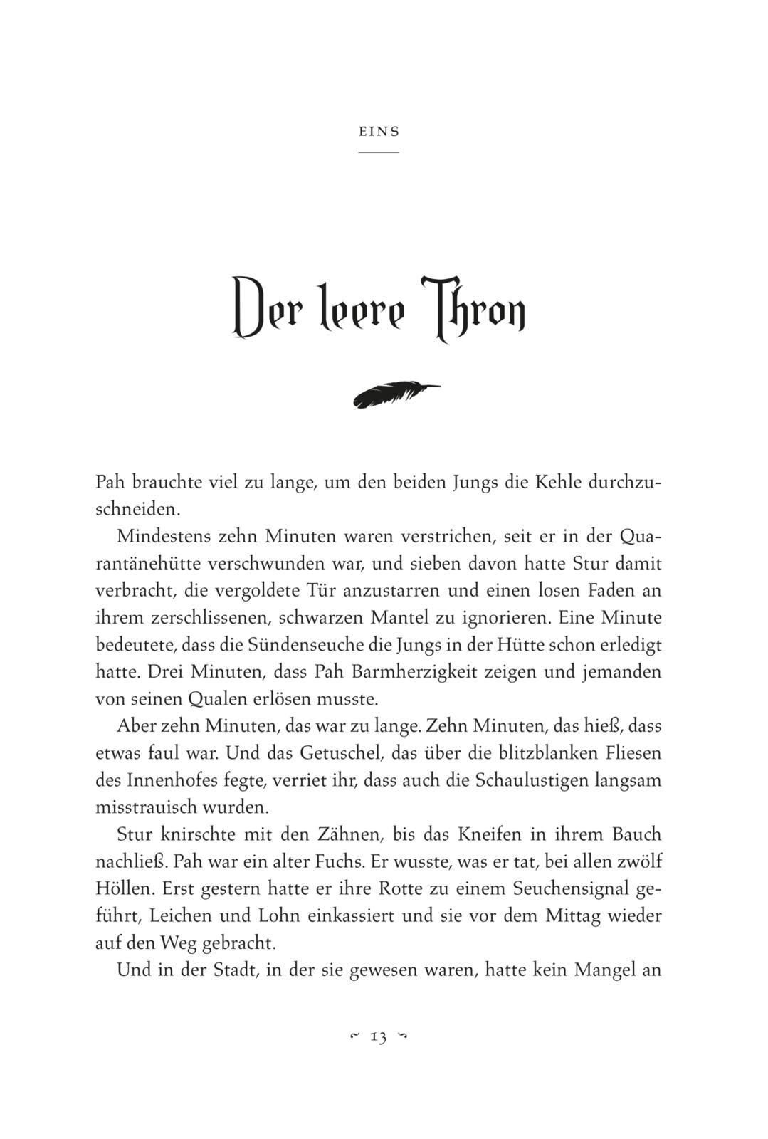 Die junge Magierin Stur aus der Krähen-Kaste kennt nur ein Gesetz: Beschütze die Deinen! Denn von den übrigen Kasten werden die Krähen geschmäht. Dabei versorgen sie Sterbende und Tote, ein wichtiger Dienst in einem Land, in dem die Sündenseuche wütet. Als Sturs Familie für eine Bestattung zum Königspalast gerufen wird, geschieht Unerwartetes: Der angeblich tote Prinz Jasimir will ihre Hilfe! Um die böse Herrscherin zu stürzen, müssen er und sein Leibwächter Tavin Verbündete treffen – unter Sturs Obhut. Aber kann sie dem Prinzen und seinem besten Freund wirklich trauen?