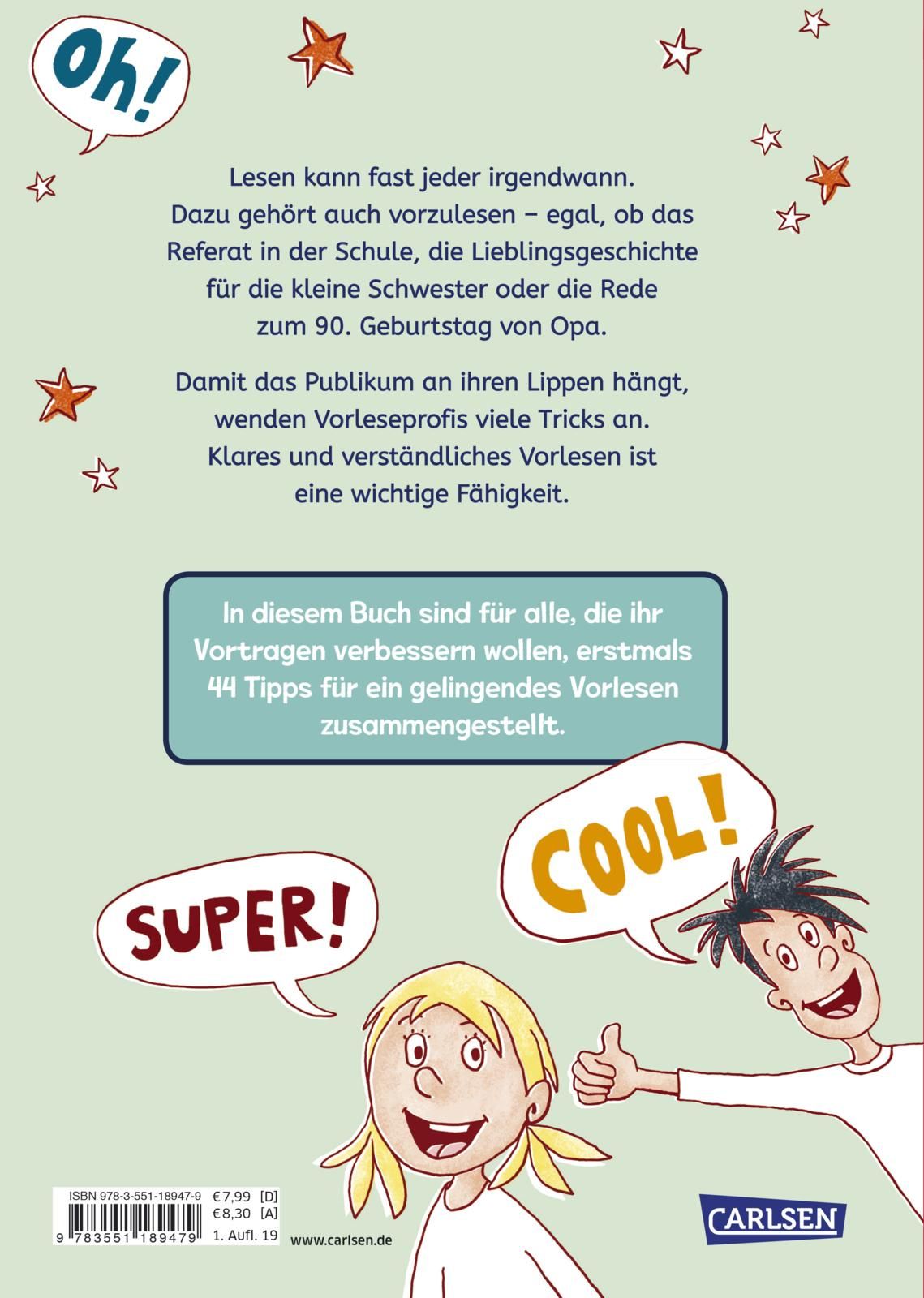 In diesem Buch sind für alle Schülerinnen und Schüler erstmals 44 wichtige Tipps für ein gelingendes Vorlesen zusammengestellt.