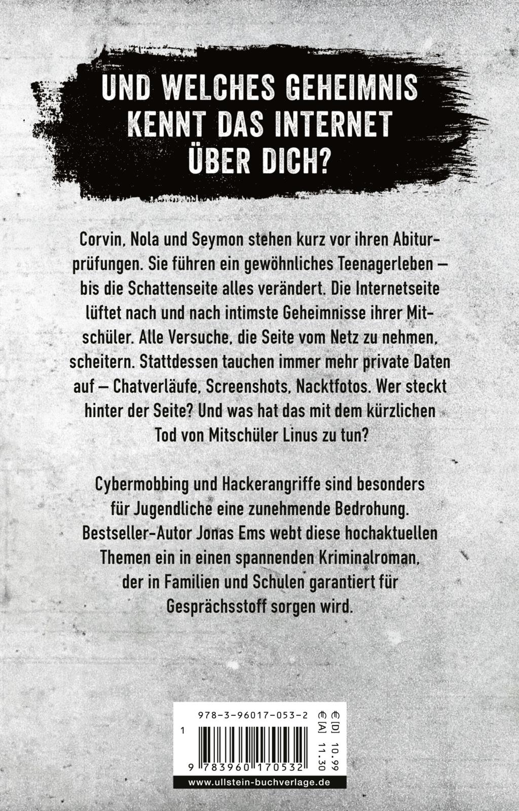 Cybermobbing und Hackerangriffe sind besonders für Jugendliche eine zunehmende Bedrohung. Jonas Ems webt diese hochaktuellen Themen ein in eine spannende Kriminalhandlung.
