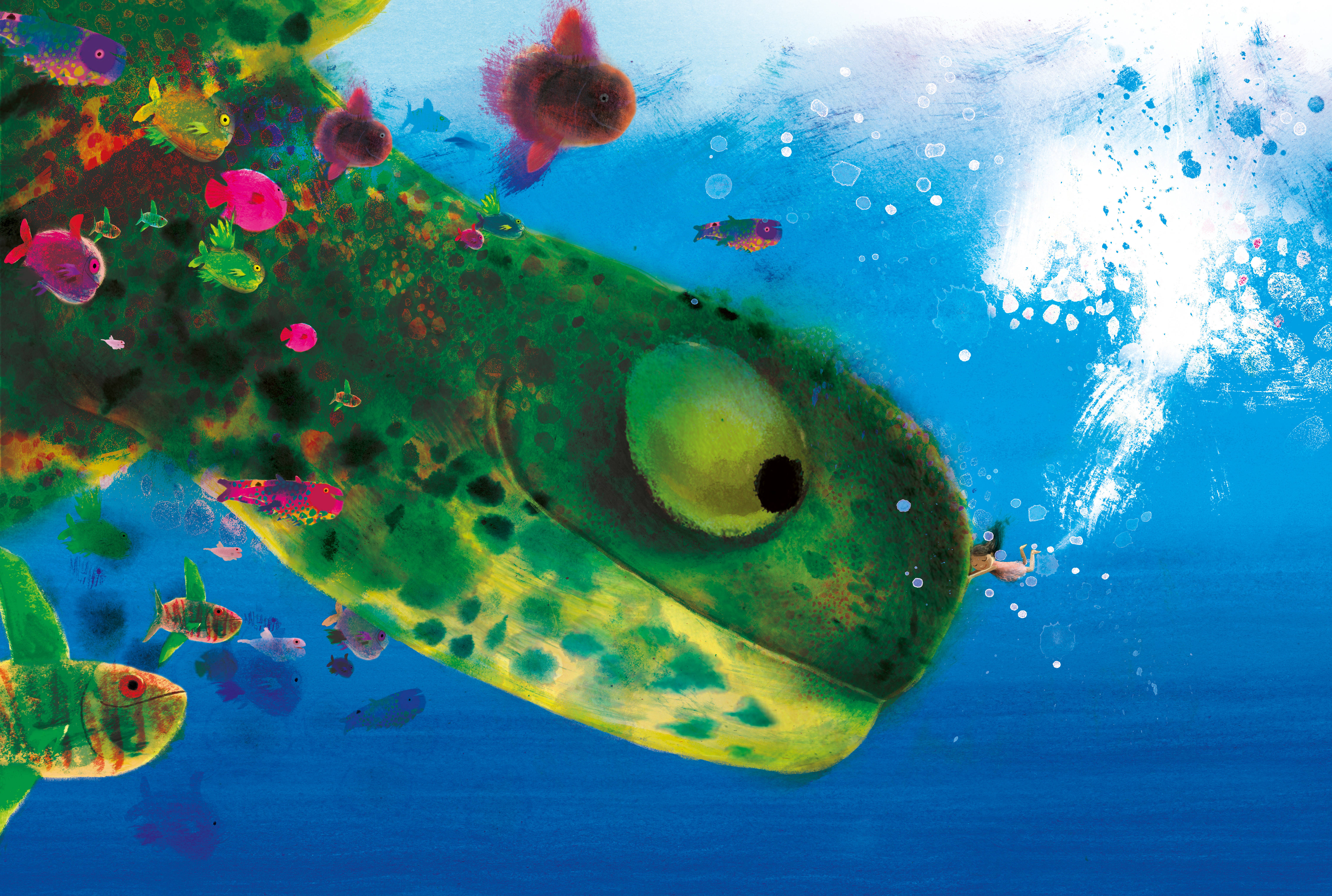 Farbenfrohe und poetische Bilder von einer faszinierenden Welt über und unter Wasser erzählen die anrührende Geschichte einer Rettung in stürmischen Gewässern.