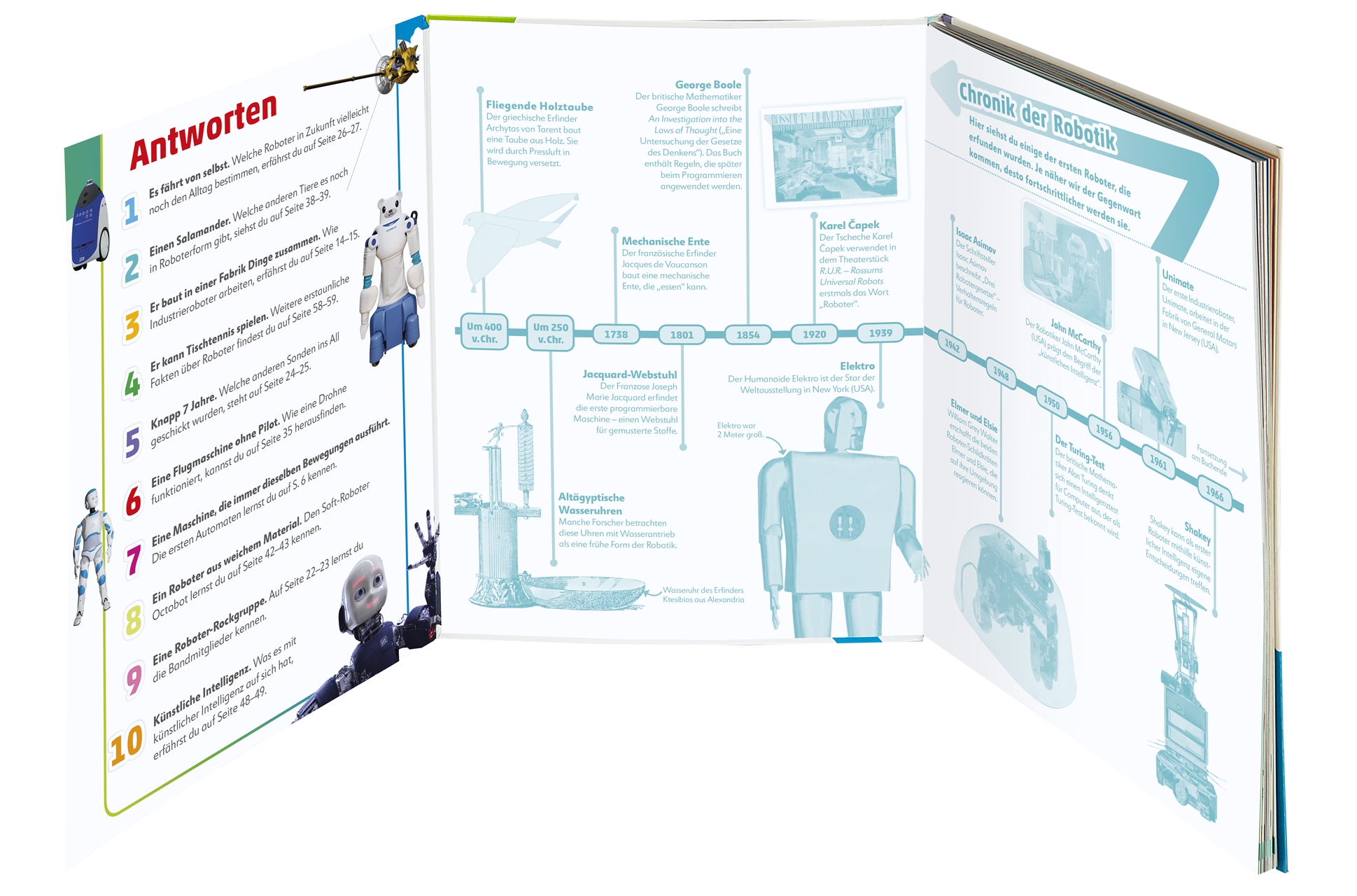 | Schlagworte | 3-D-Grafiken • ab 10 Jahren • ab 7 Jahren • ab 8 Jahren • Ab 9 Jahren • Android • Automaten • Bionik • BOT • Buch ab 7 • Checker • Comics • Computer • Coole Technik • Drohne • Erfindungen • Erstes Wissen für Kinder • Erstleser • Experteninterview • Fakten • Find's Raus • Find’s Raus • Forschung • Franka Emika Panda • futuristisch • Gadget • Grundschule • Haushalt • Haushaltsgeräte • Hightech • High Tech • Hort • humanoid • Industrie • Industrieroboter • Innovationen • interaktiv • Interview • KI • Kinder • Kinderbuch • Kinder Buch • Kindersachbuch • Klappen • Künstliche Intelligenz • Leseanfänger • Leseförderung • Magazin • Marsrover • Marvin Becker • Maschinen • Maschinen der Zukunft • Mech • Mechanik • Medizin • Medizintechnik • Nathan Lepora • Naturwissenschaften • Pepper • pocket • Programmieren • Quiz • Rekorde • Roboter • roboterfabrik • Robotik • robotisch • Sachwissen • Science Fiction • Serviceroboter • Steckbriefe • Superchecker • Technik • Technologie • To Go • Uni Hannover • Wie funktionieren Roboter • Wissen für die Hosentasche • Wissen für Kinder • Wissenschaft • Zukunft der Arbeit |