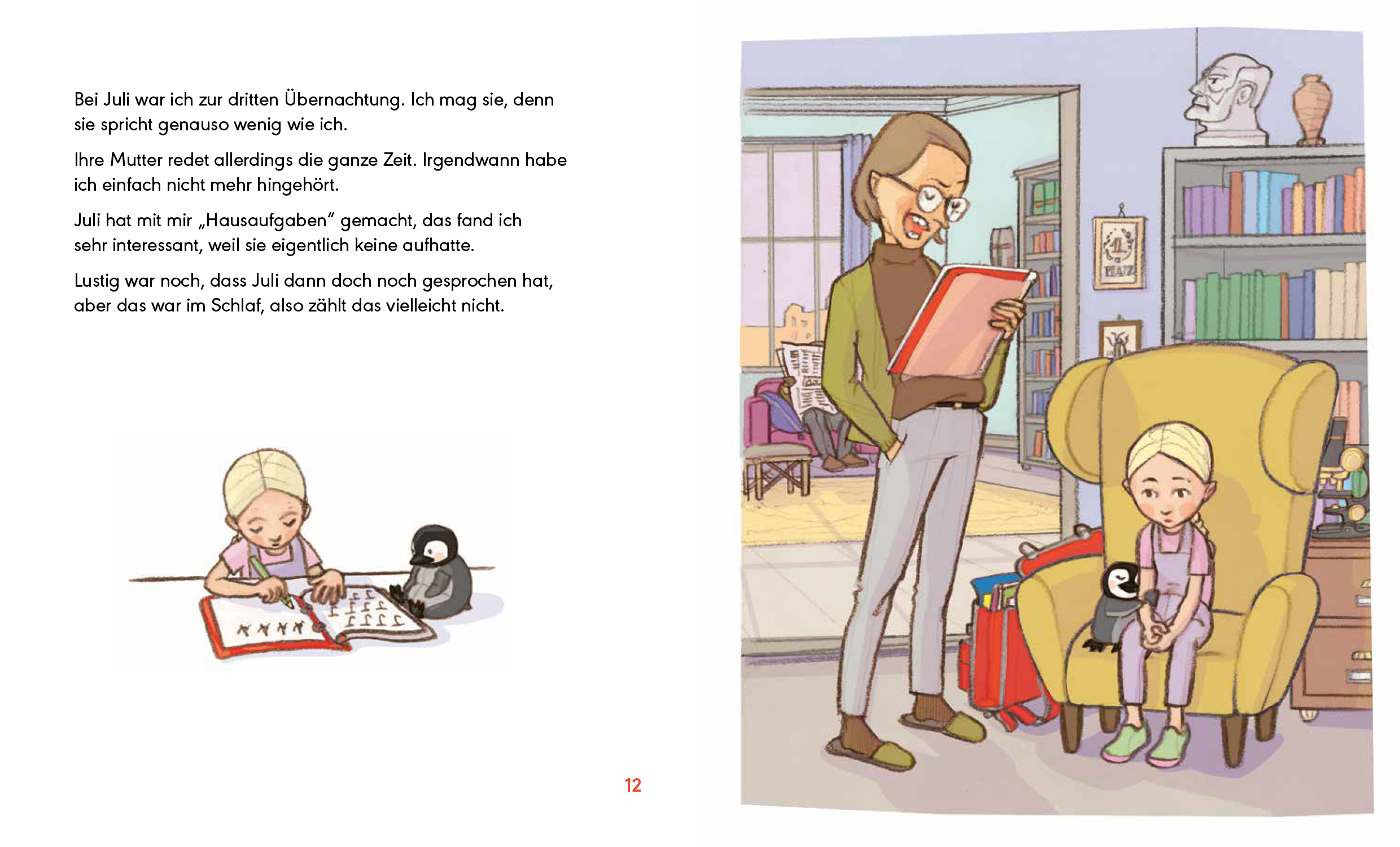 Hallo, ich bin Mio, der Pinguin der Klasse 1 d! Und da wohne ich auch, in der Schule also. Aber einmal durfte ich bei allen übernachten - nacheinander natürlich. Bei jedem Kind war es zuhause anders, das war aufregend! Hier im Buch steht alles darüber.