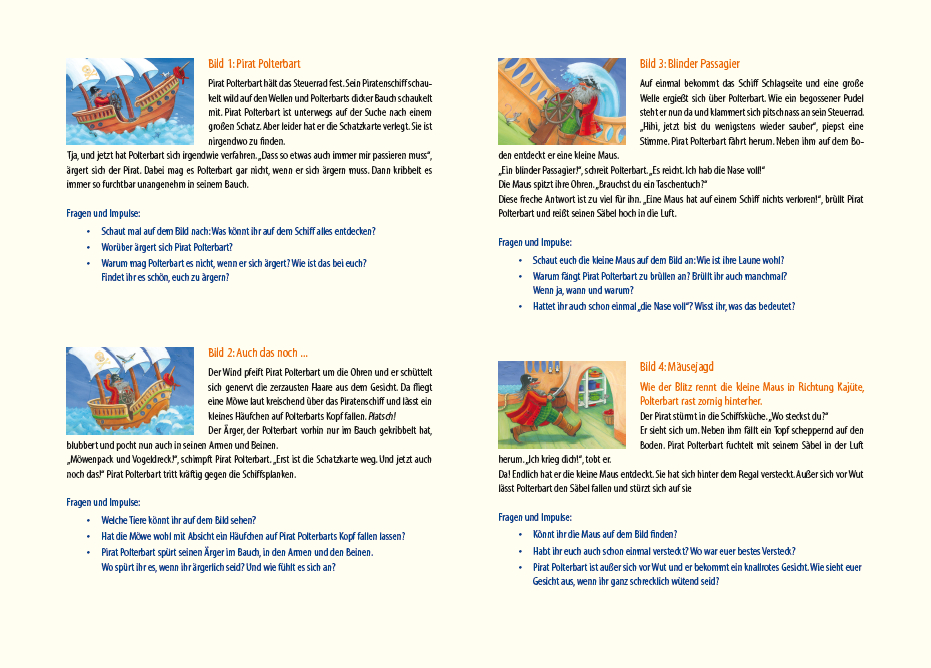 | Schlagworte | Aufsteller • Bilder • Bildkarten • Bildkartenset • Emotionen • Erzählen • Erzähltheater • Fragen • Impulse • Kamishibai • Kindergarten • Kindergruppen • Kita • Krippe • Pirat • Piraten • Piratenschiff • Seeräuber • Umschlag • Wut |