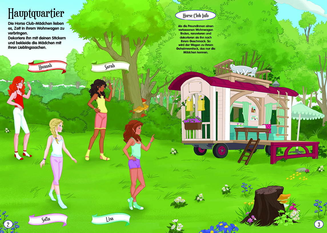 Bekannte Szenen aus der Welt der Horse Club-Mädchen mit liebevoll illustrierten Szenen aus Lakeside lassen die Herzen der Horse Club-Fans höher schlagen.