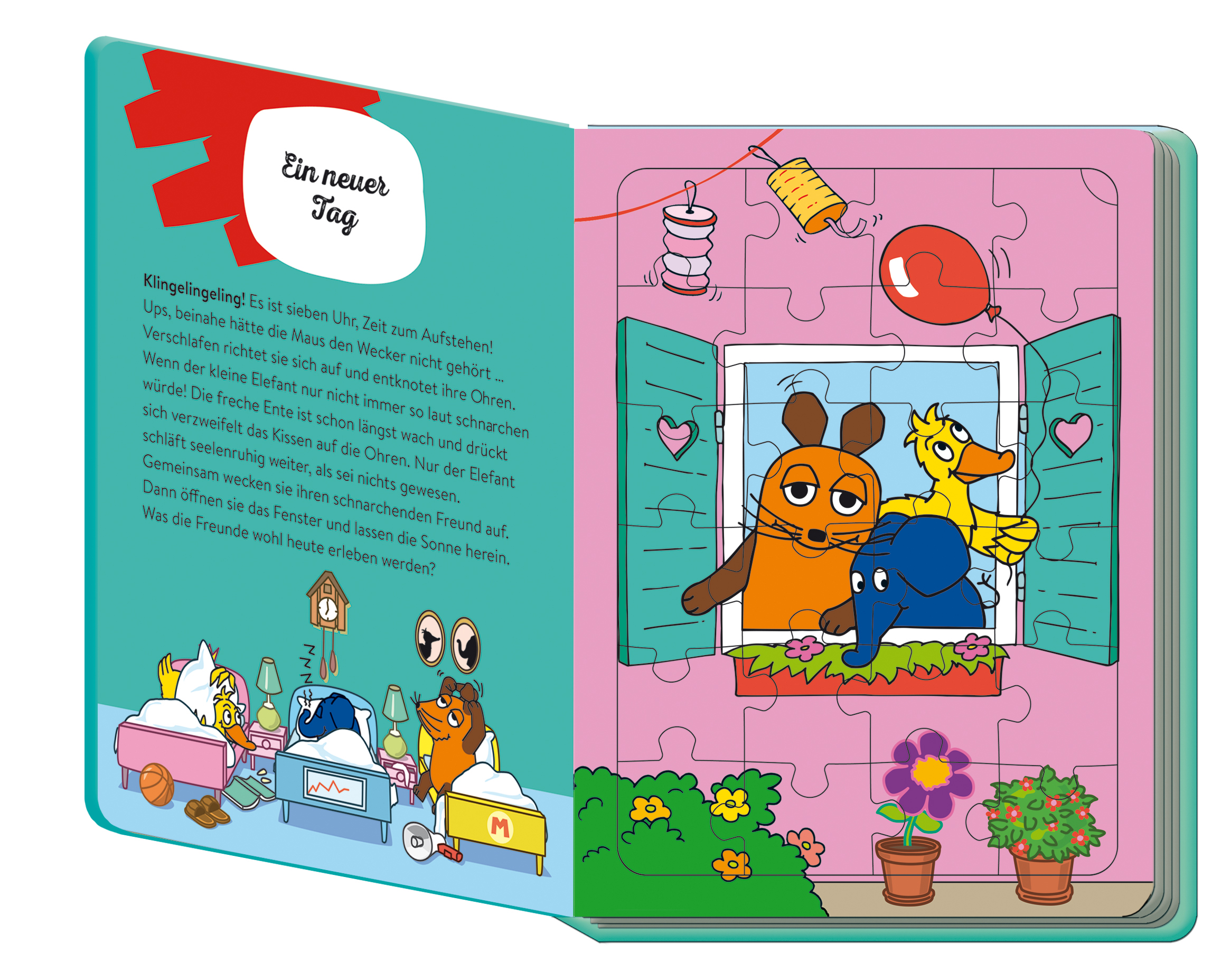 Ein aufregender Tag wartet auf die Maus und Ihre Freunde in diesem bunten Puzzlebuch mit kleinen Geschichten und Bilderrätseln unter jedem Puzzle.