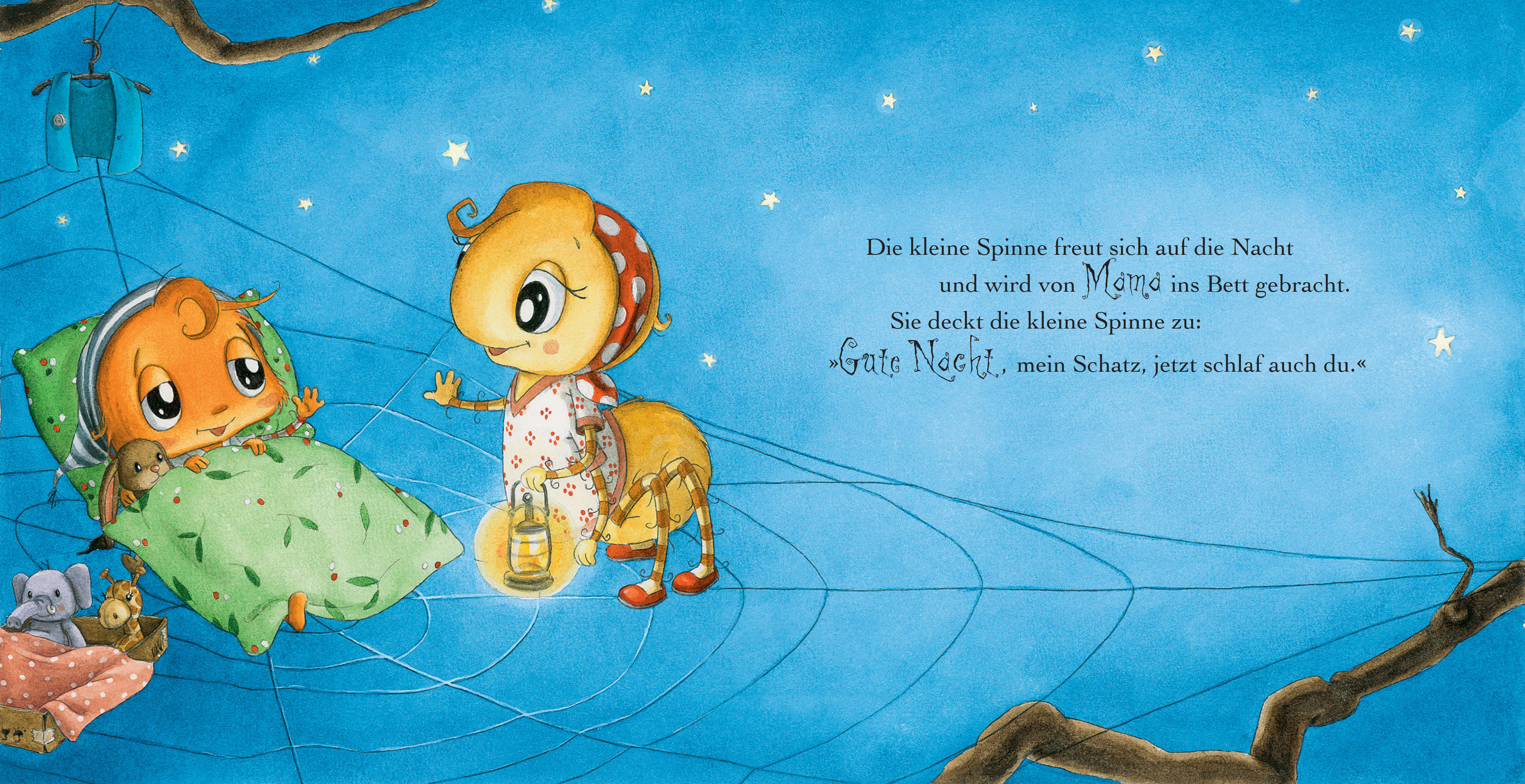 Glücklich einschlafen mit der kleinen Spinne!Die kleine Spinne ist müde. Auf dem Weg ins Bett sagt sie noch all ihren Freunden und Verwandten Gute Nacht. Sie besucht Tante Igitte, Onkel Langbein, Mucki und Oma Erna. Und sie schaut auch noch, was ihr bester Freund Niesi so macht. Der kuschelt bereits mit seinem Schnuffeltuch. Na, dann wird es auch höchste Zeit für die kleine Spinne, in ihr Netzchen zu krabbeln. "Gute Nacht, mein Schatz, jetzt schlaf auch du."Eine liebevolle Gutenachtgeschichte zum Immer-wieder-Lesen. Von Diana Amft, der aus Film und Fernsehen bekannten Schauspielerin