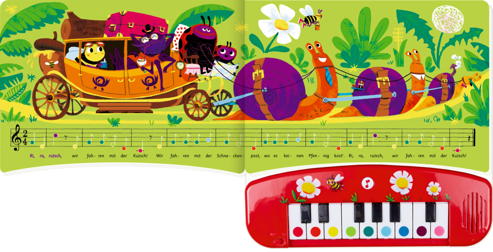 Zehn der beliebtesten Kinderlieder können dank der klaren Farbkodierung der Tasten einfach nachgespielt werden: ganz ohne Vorkenntnisse!Die echten Klaviertasten lassen sich besonders leicht drücken. Der schöne Klang und die fröhliche und kindgerechte Notendarstellung laden zum Mitspielen ein!Musikpädagogen empfehlen dieses Buch, denn es fördert- das Konzentrationsvermögen- die Hand-Auge-Koordination- das erste Farbverständnis- die emotionale und kognitive Entwicklung