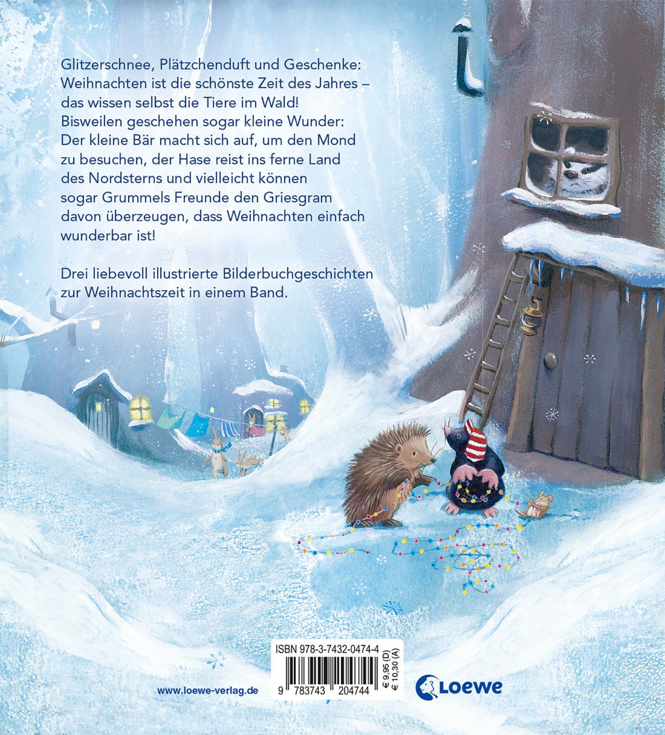 Bisweilen geschehen sogar kleine Wunder: Der Bär macht sich auf, um den Mond zu besuchen, der kleine Hase reist ins ferne Land des Nordsterns und vielleicht können sogar Grummels Freunde den Griesgram davon überzeugen, dass Weihnachten einfach wunderbar ist.
