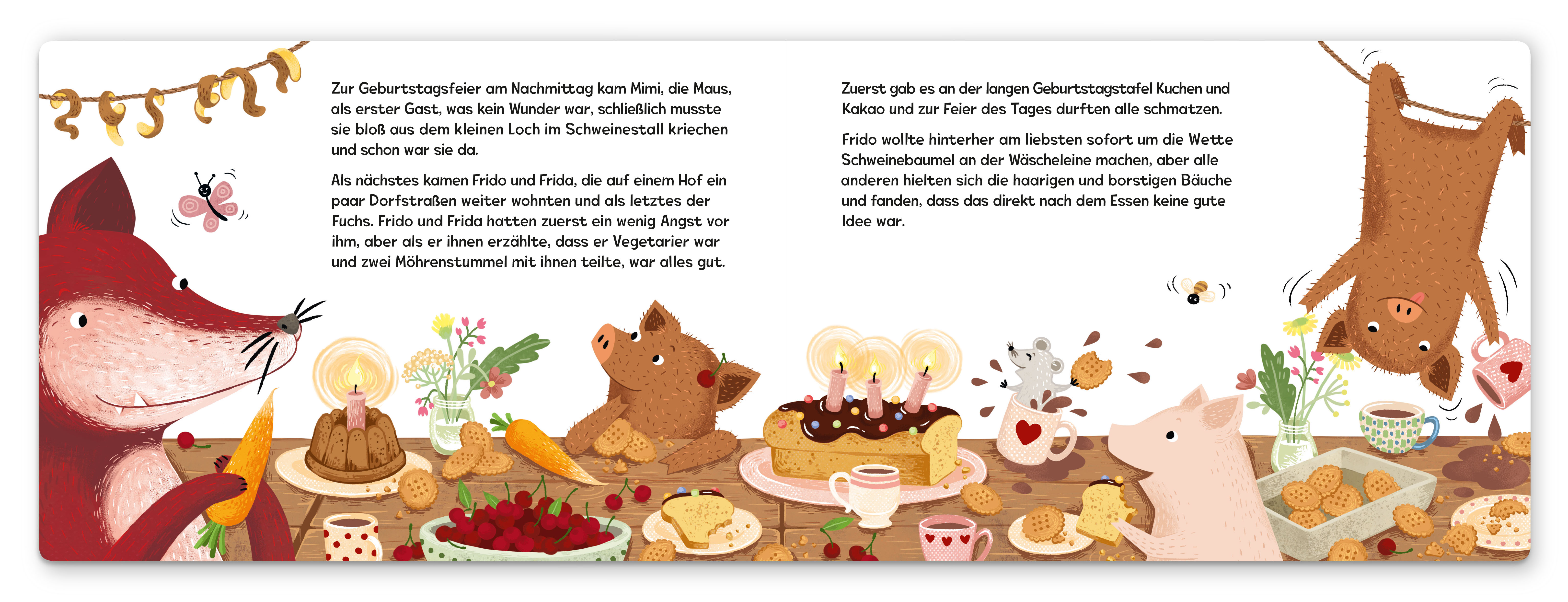 Eine fröhliche Ferkel Geschichte für alle kleinen und großen Geburtstags-Party-Fans.