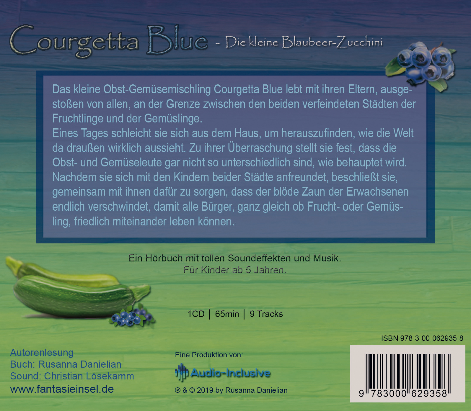 Rusanna Danielian ist 1983 in Armenien geboren und seit ihrem siebten Lebensjahr in Deutschland aufgewachsen. Nach ihrem Diplom in Erziehungswissenschaften, mit Schwerpunkt Medienpädagogik, studierte sie an einer englischen Filmschule, um ihrer Leidenschaft für das Storytelling nachzugehen. Seit 2016 lebt und arbeitet sie als Freiberuflerin in Nordrhein-Westfalen. Sie hat bereits viele Kurzfilme nach eigenen Drehbüchern verwirklicht. "Courgetta Blue" ist ihr Debüt als Kinderbuchautorin.