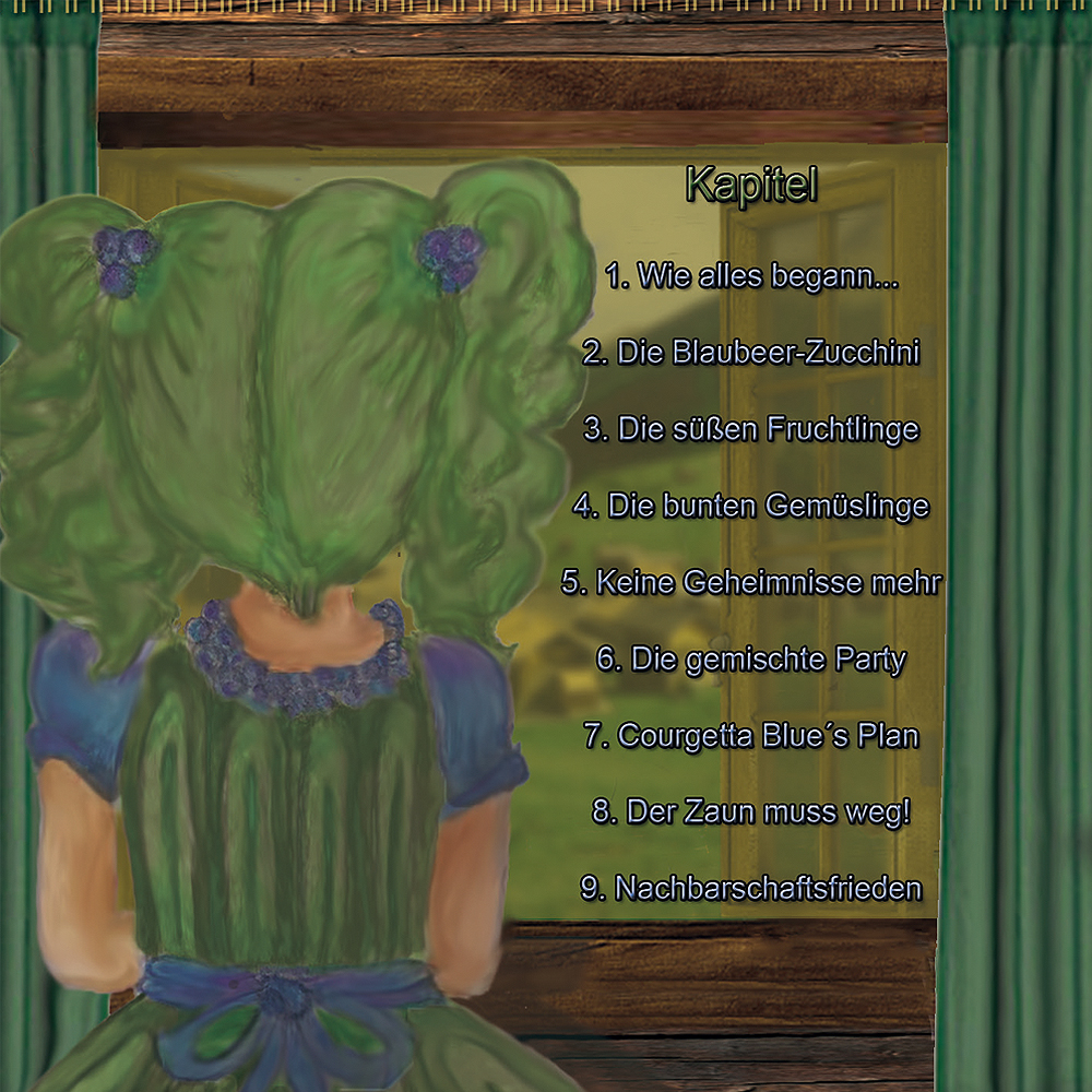 Das kleine Obst-Gemüsemischling Courgetta Blue lebt mit ihren Eltern, ausgestoßen von allen, an der Grenze zwischen den beiden verfeindeten Städten der Fruchtlinge und der Gemüslinge.