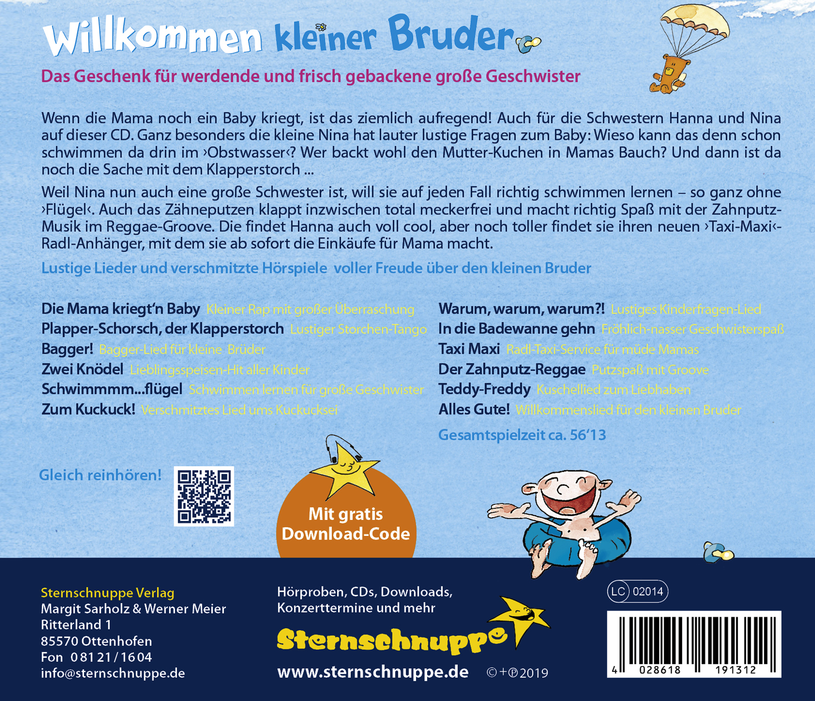| Schlagworte | Baby • Bruder • Familie • Freude • Geburt • Geschenk • Geschwister • Geschwisterkind • Glückwunsch • Kinderlied • Klapperstorch • Luftballon • Mama • Schwester • Teddy • Willkommen • Zahnputzlied • Zuwachs |