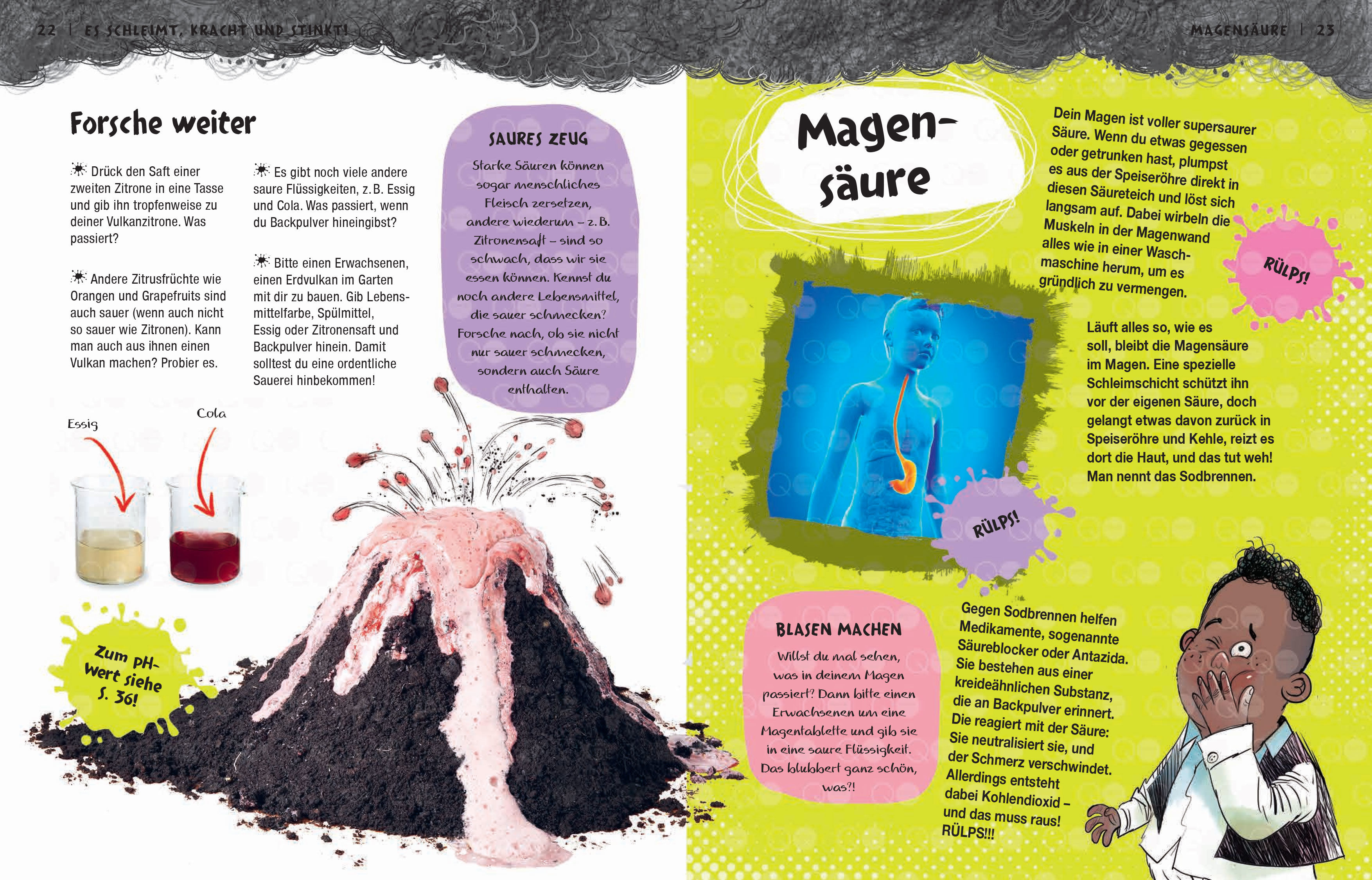 Jede Menge coole und eklige Experimente für neugierige Forscher ab 7! Kinderleichte Schritt-für-Schritt-Anleitungen zeigen, wie sie magischen Schleim herstellen oder einen Zitronen-Vulkan zum Ausbruch bringen können. Und was passiert, wenn Knochen eine Woche in Essig liegen oder wie legt man einen Schimmelgarten an?Ergänzt werden die Experimente durch spannende Fakten und Hinweise über ihren Nutzen im Alltag und in der Natur. Lustige Illustrationen erhöhen den Spaßfaktor und laden zum Ausprobieren ein.