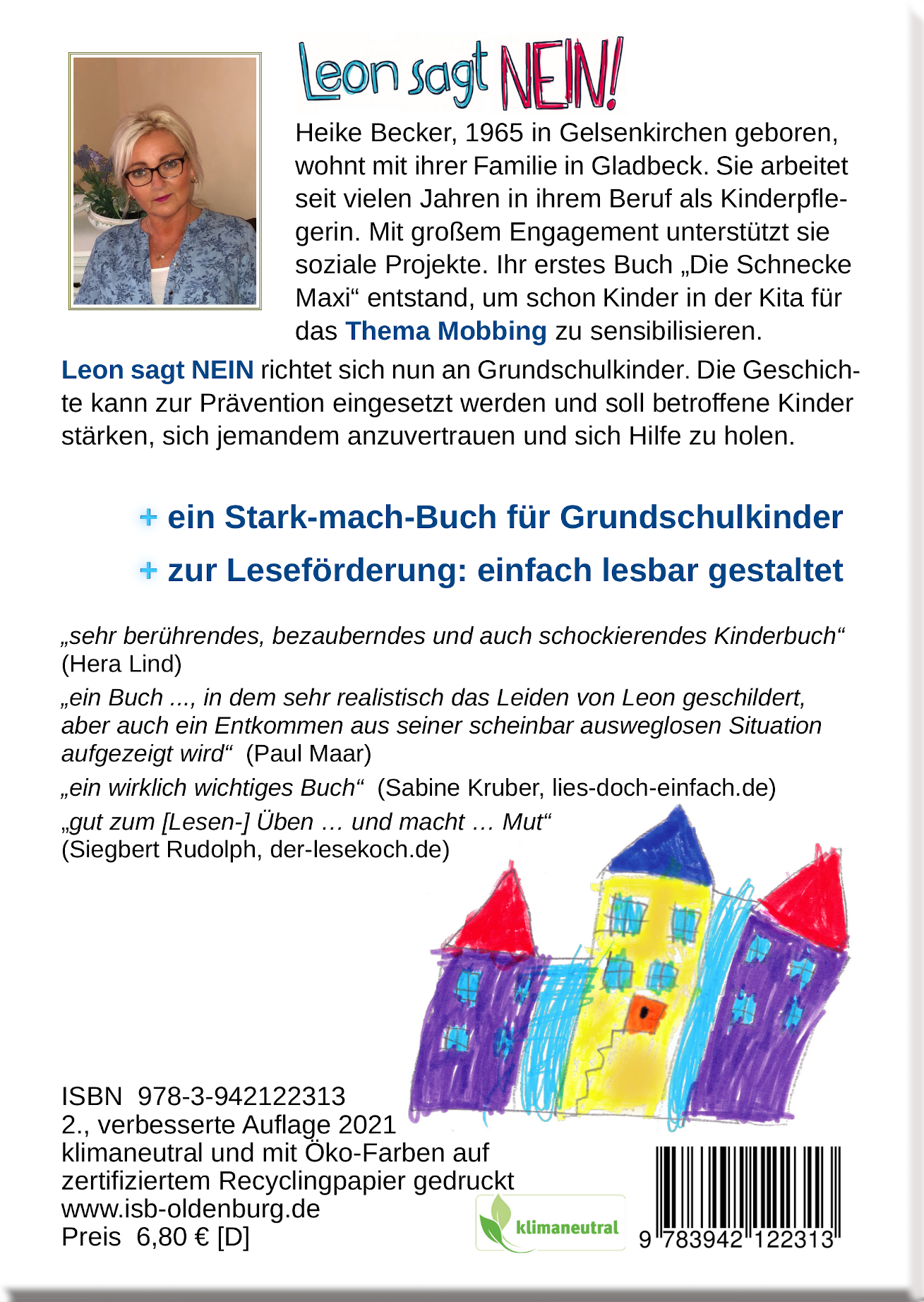 Leon wird in der Schule gemobbt. Er wird beleidigt, erpresst und bedroht. Täglich geht er mit Bauchschmerzen zur Schule. Selbst seine Mutter ahnt nichts. Erst als die Situation eskaliert, ändert sich alles. "Leon sagt Nein!" richtet sich an Vor- und Grundschulkinder. Die Geschichte kann zur Behandlung des Themas Mobbing und zur Prävention eingesetzt werden und soll betroffene Kinder stärken, sich jemandem anzuvertrauen und sich Hilfe zu holen. - Alle Illustrationen sind von Kindern erstellt worden