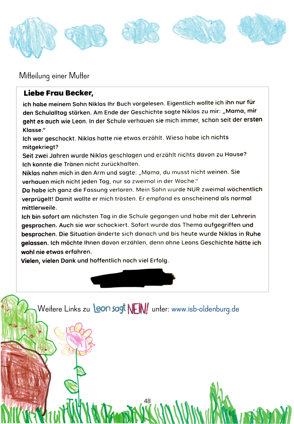 "Ziel ist, betroffene Kinder zu stärken, sich jemandem anzuvertrauen und sich Hilfe zu holen. Forschungen in der Schweiz haben ergeben, dass zwei Kriterien in der Mobbingprävention von Bedeutung sind: Praxisnähe und die Umsetzbarkeit im Schulalltag – beide Kriterien werden durch dieses kindgerechte Büchlein erfüllt." (Zitat Socialnet, zur 1. Auflage)