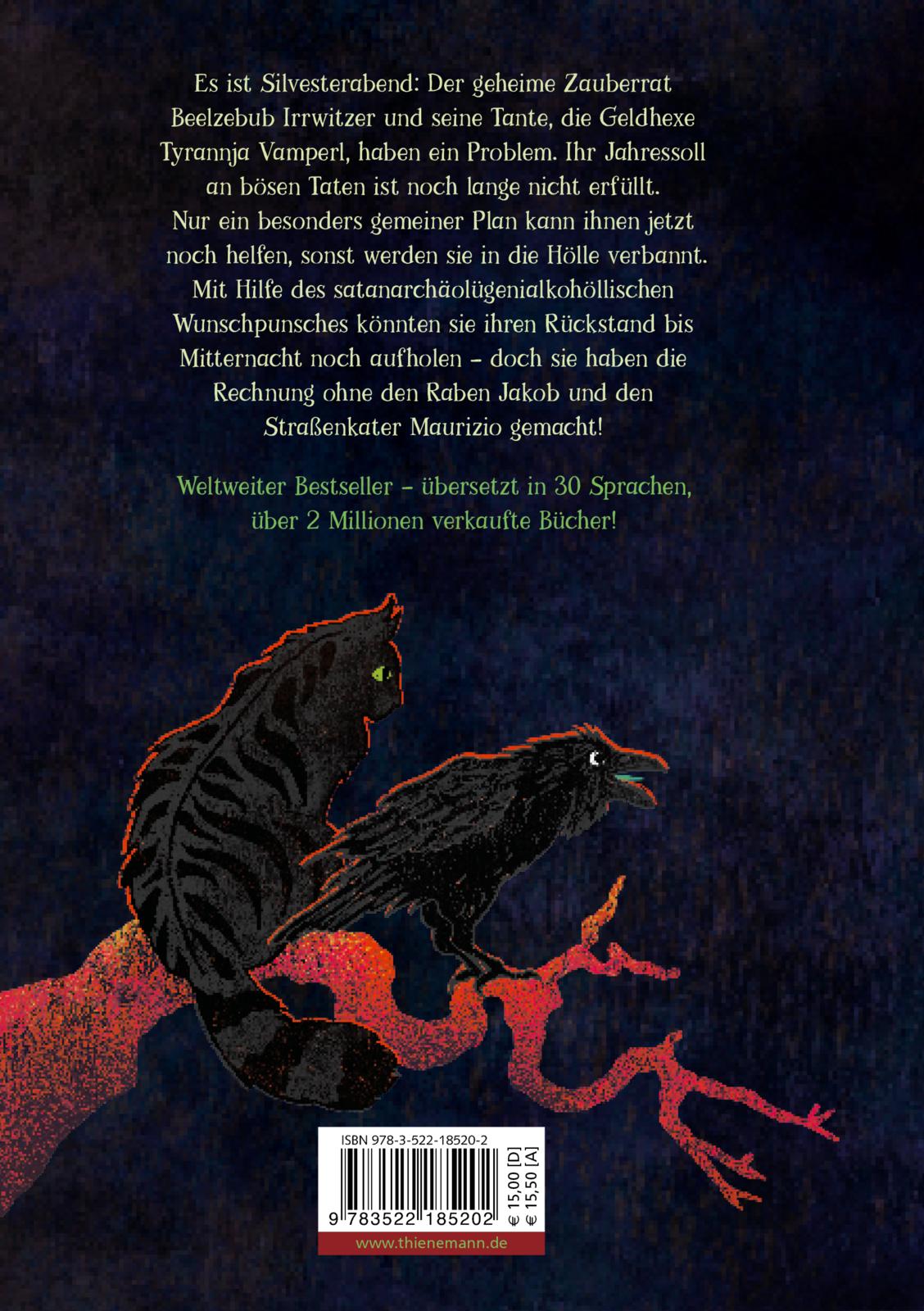 Es ist Silvesterabend: Der geheime Zauberrat Beelzebub Irrwitzer und seine Tante, die Geldhexe Tyrannja Vamperl, haben ein Problem. Sie haben ihr Jahressoll an bösen Taten noch lange nicht erfüllt. Nur ein besonders gemeiner Plan kann ihnen jetzt noch helfen, sonst werden sie in die Hölle verbannt. Können sie mit Hilfe des satanarchäolügenialkohöllischen Wunschpunsches ihren Rückstand bis Mitternacht noch aufholen? Doch die beiden haben nicht mit dem räudigen Raben Jakob und dem Straßenkater Maurizio gerechnet. Die beiden sind Spione des hohen Rates der Tiere und werden alles tun, um den magischen Plan zu verhindern.