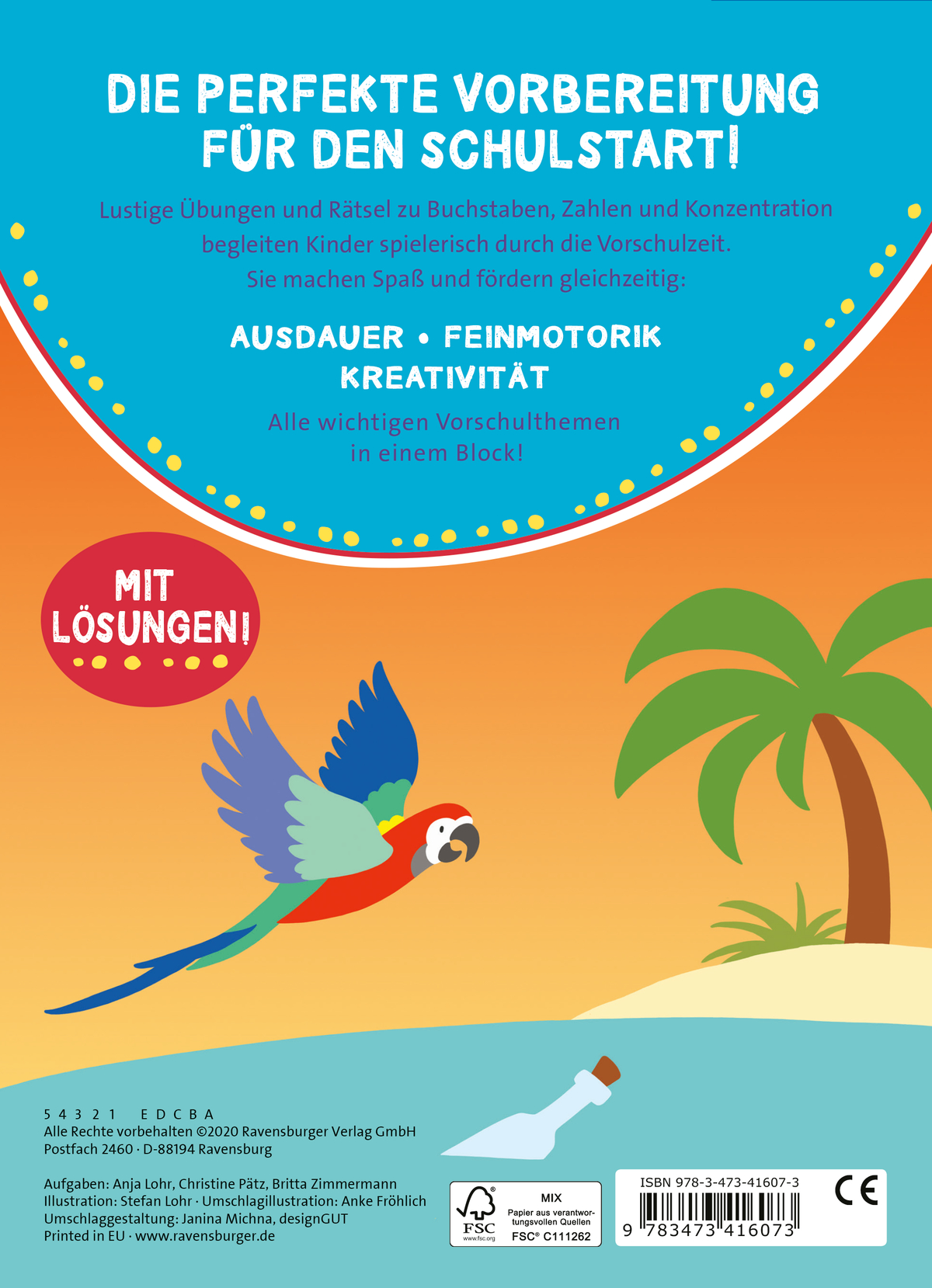 In diesem Block steckt alles drin, was Kinder für einen optimalen Start in die Schule brauchen: viele spannende Buchstaben- und Gitterrätsel, Suchbilder, Labyrinthe, Schreibübungen zu Zahlen und Buchstaben sowie erste Leseübungen. So werden spielerisch Grundlagen von Zahlen, Buchstaben und Konzentration vermittelt. Die lustigen Illustrationen laden im Anschluss zum Ausmalen ein.