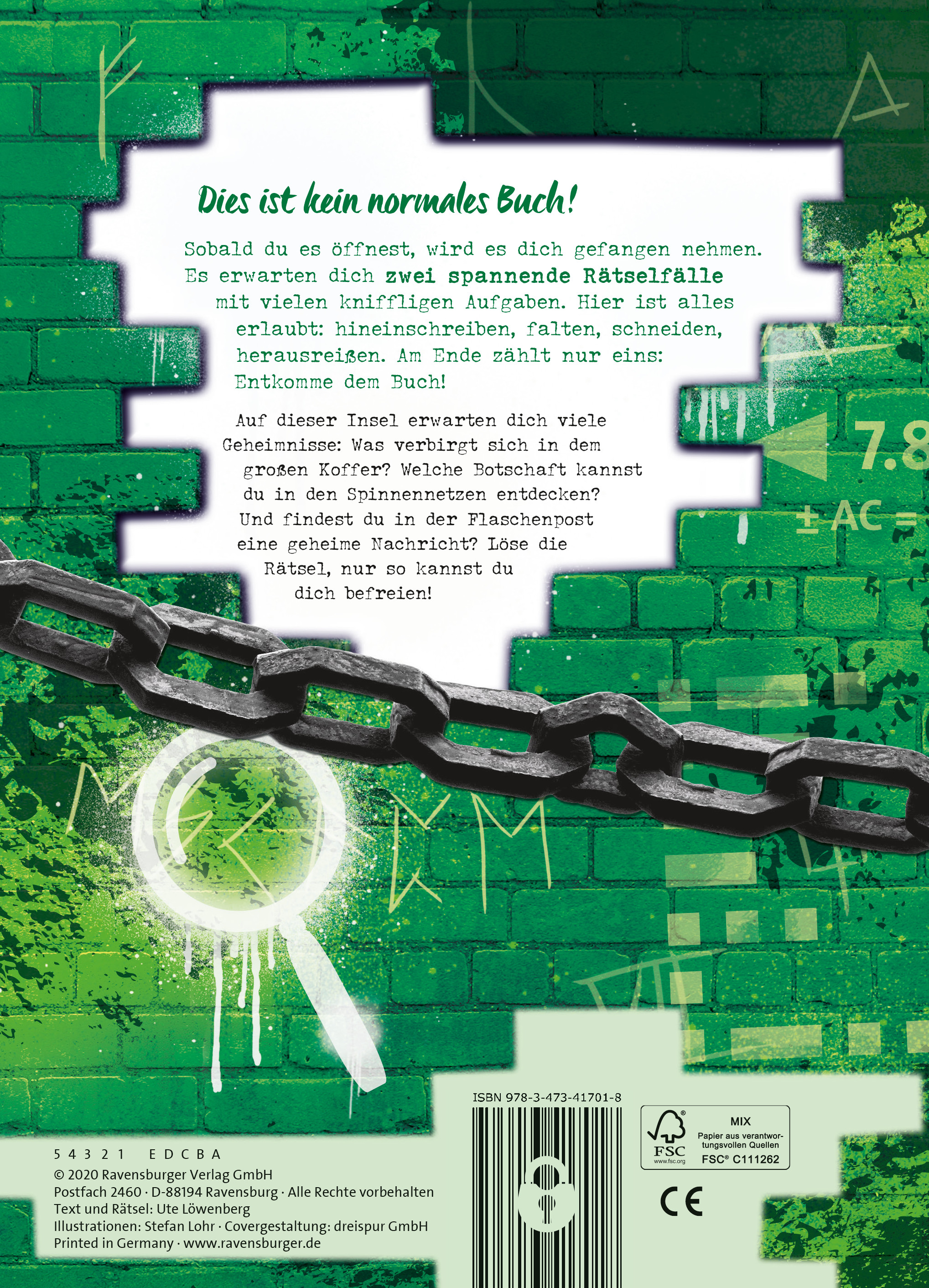 Um von dieser geheimnisvollen Insel zu entkommen, ist neben logischem Denken und Durchhaltevermögen auch Kreativität gefragt. Wie bei Exit-Rätselaufgaben üblich, ist hier alles erlaubt: ins Buch hineinschreiben und -malen, ausschneiden, falten oder zerreißen. Und nur wer den Hinweisen richtig folgt und alle Rätsel löst, kann sich befreien! Die Rätsel im Buch kann ein Kind ab 8 Jahren alleine bewältigen. Manche sind einfacher, manche ziemlich knifflig, bei allen wird vorausgesetzt, dass das Kind lesen kann. Aber es macht auch sehr viel Spaß, mit der ganzen Familie gemeinsam zu rätseln und die beiden Fälle zu knacken. Wer nicht trickst, ist dann mehrere Stunden gut beschäftigt. Ravensburger Exit Room Rätsel fordern heraus, bringen Abenteuer ins Wohnzimmer und sind dabei ungemein unterhaltsam: Ein toller kindgemäßer Einstieg in die Welt der Exit/Escape-Room-Rätsel.