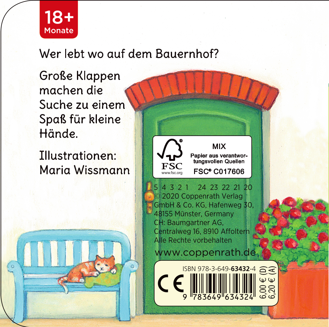 Wer lebt wo auf dem Bauernhof? Große Klappen machen die Suche zu einem Spaß für kleine Hände.