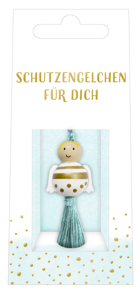 Ein wunderbares Schutzengelchen zum Verschenken für viele Anlässe. Das niedliche Segenspüppchen ist aus Holz und mit kleinen Filzflügeln ausgestattet. Es lässt sich ganz leicht überall anhängen und kommt in einer originellen Geschenkverpackung.