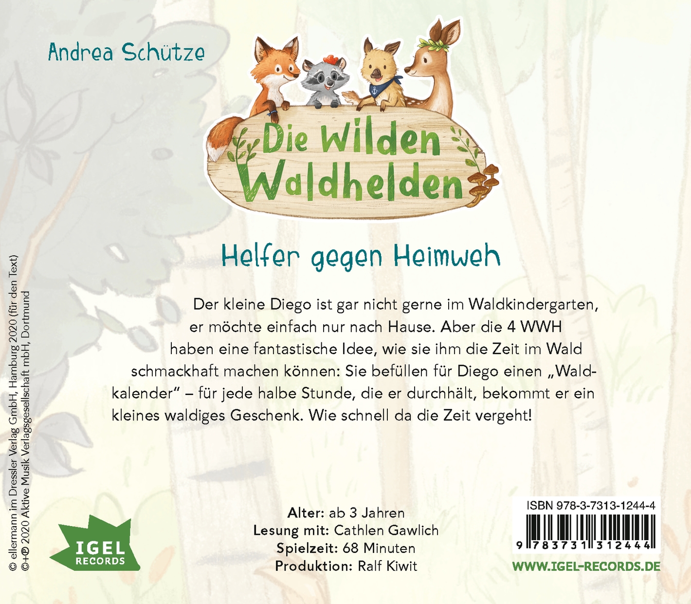 | Schlagworte | Freundschaft • Freundschaft zwischen Tieren • Frischling • Fuchs • Gemütlich • Heimweh • helfende Helden • Hirschkalb • Idylle • Kinderbuch ab 3 • Kindergarten • Kinderhörbuch ab 3 • Kita • Rehkitz • Spaß • sprechende Tiere • Tiere • Tierfreunde • Tierkinder • Waldkindergarten • Waldkindergaten • Waschbär |