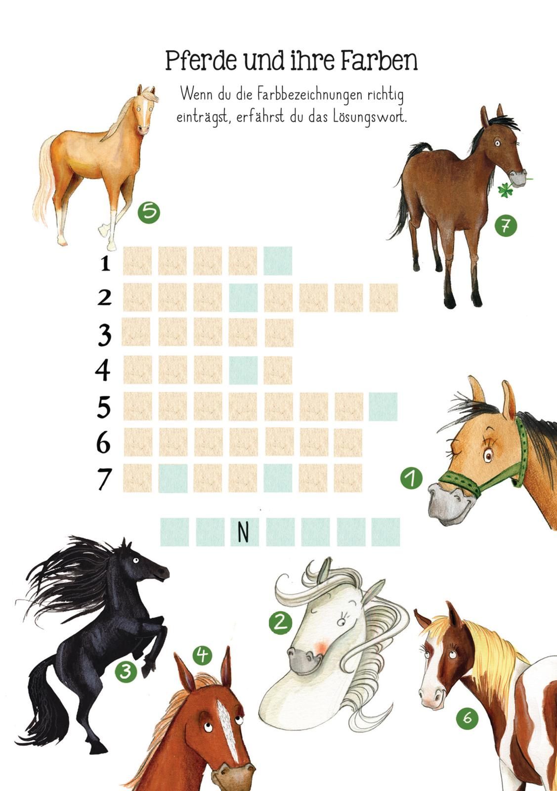 In diesem Rätselblock warten viele Kreuzworträtsel rund um das Thema Pferde darauf von dir gelöst zu werden. Ob es um die Reitausrüstung, Pferderassen, Ponys, den Reiterhof oder anderes Expertenwissen geht, hier ist ein echtes Knobel-Turnier für Reit-Expertinnen und pferdebegeisterte Kinder geboten.