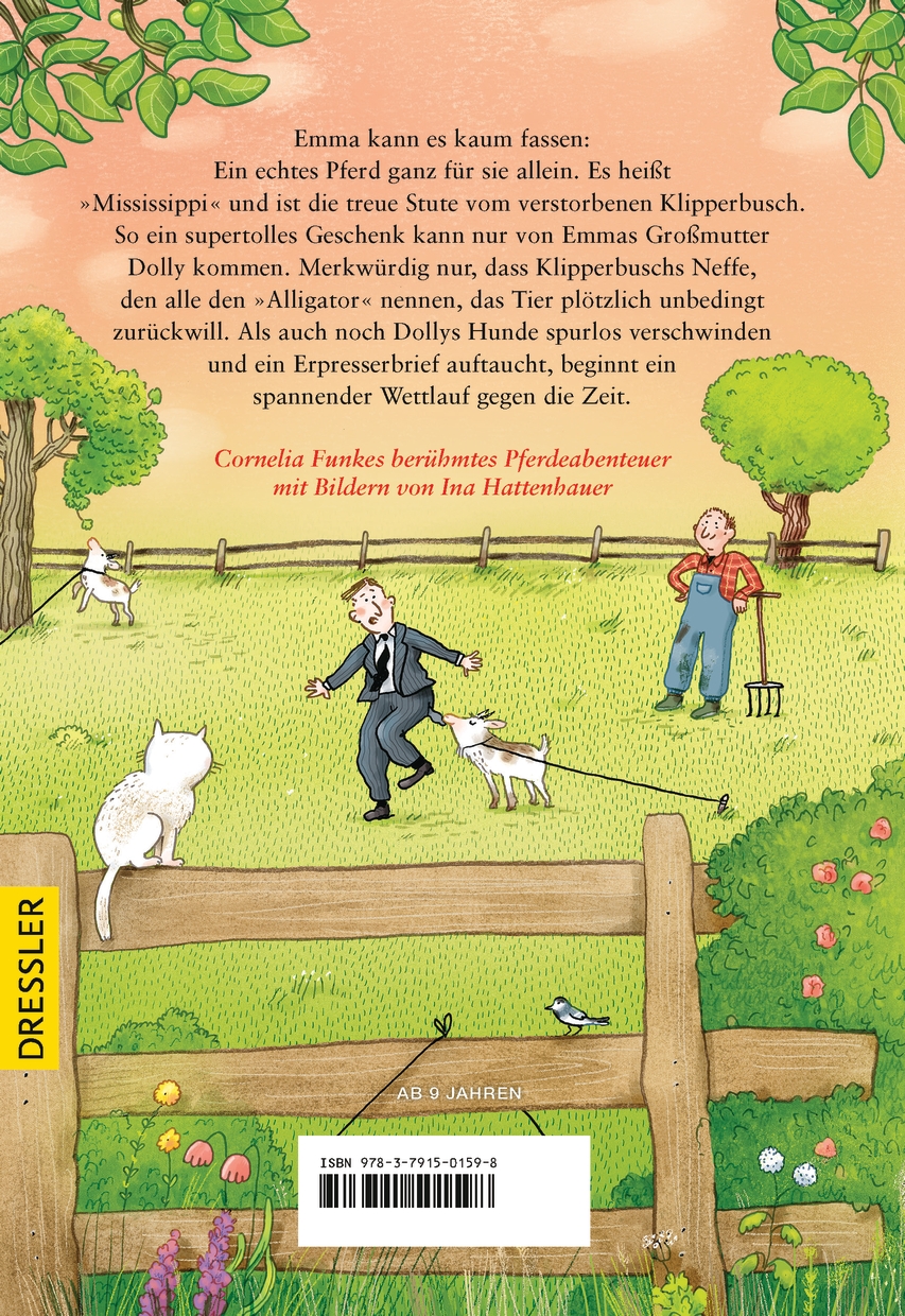 Emma kann es kaum fassen: Ein echtes Pferd ganz für sie allein. Es heißt "Mississippi" und ist die treue Stute vom verstorbenen Klipperbusch. So ein supertolles Geschenk kann nur von Emmas Großmutter Dolly kommen. Merkwürdig nur, dass Klipperbuschs Neffe, den alle den "Alligator" nennen, das Tier plötzlich unbedingt zurück will. Hängt das etwa mit Klipperbuschs geheimnisvollem Testament zusammen? Als auch noch Dollys Hunde spurlos verschwinden und ein Erpresserbrief auftaucht, beginnt ein spannender Wettlauf gegen die Zeit. Cornelia Funkes berühmtes Pferdeabenteuer mit neuem Cover und neuen Illustrationen.