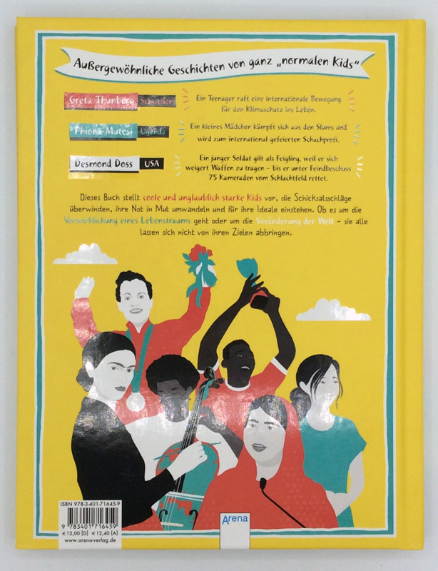 Mit Kurzbiografien von: Greta Thunberg, William Kamkwamba, Laura Dekker, Joel Kioko, Poorna Malavath, Boyan Slat, Yeonmi Park, Abraham Keita, Juliane Koepcke, Desmand Doss, Phiona Mutesi, Rain, Malala Yousafzai, Pelé, Molly Kelly, Ally Swinton, Lizzie Velásquez, Louis Braille, Bethany Hamilton, Mohamad Al Jounde, Pratima Sherpa, Kevin Breel, Frida Kahlo, Nona Siblings, Ellie Simmonds, Pierre Demalvilain, Juliana Ossa, Sheku Kanneh-Mason, Ayesha Farooq.