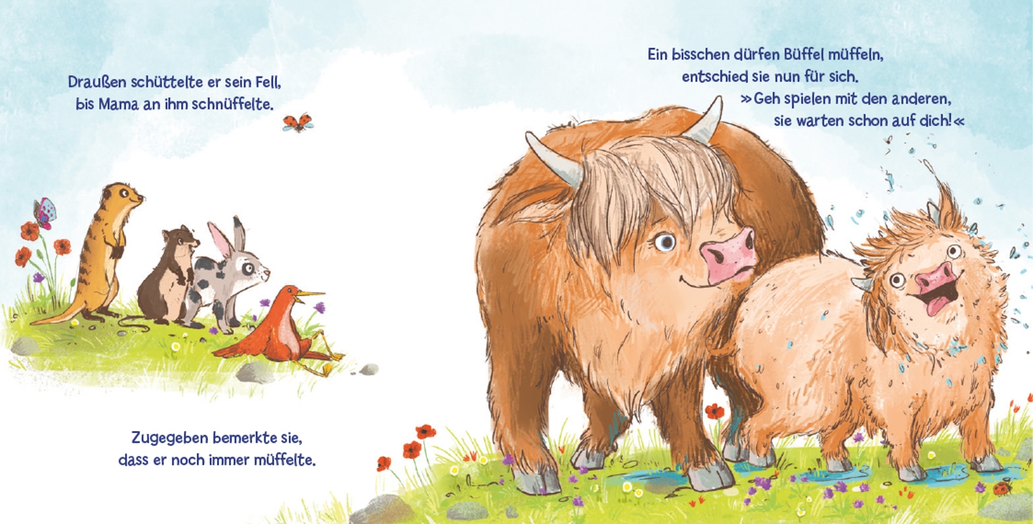 Puh - wer müffelt denn hier? Der kleine Büffel müffelt und müffelt immer mehr. Doch das stört ihn nicht - Wasser ist nämlich nicht so sein Ding. Erst als seine Freunde vor ihm flüchten statt mit ihm zu spielen, sieht der kleine Müffelbüffel es ein: Vielleicht sollte er doch lieber mal ein Bad nehmen?!