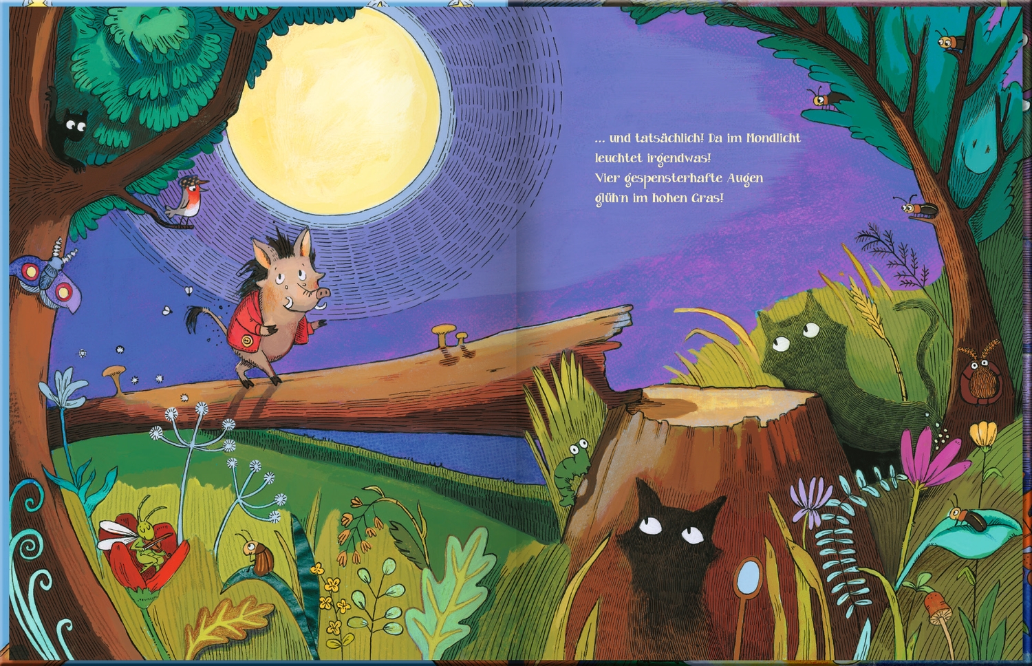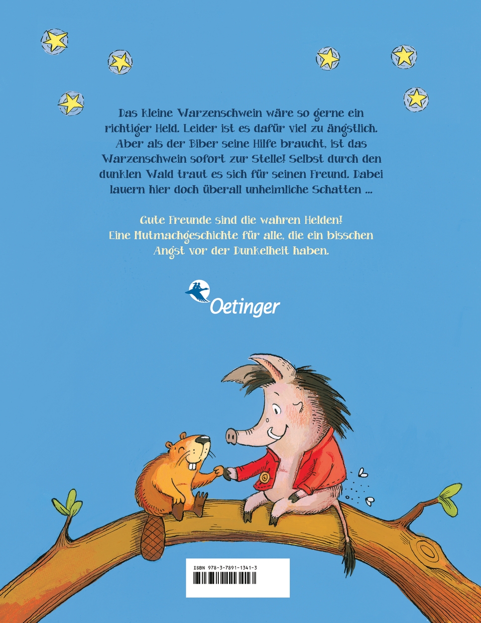 Wie gern wäre das Warzenschwein ein Held. Nur leider ist es viel zu ängstlich. Trotzdem zögert es keine Sekunde, als der Biber eines Nachts seine Hilfe braucht. Auf dem Weg durch den dunklen Wald erschrickt das Warzenschwein immer wieder vor unheimlichen Schatten. Zum Glück sind es nur harmlose Tiere, die es begleiten wollen. Schließlich kommt das Warzenschwein mit großem Gefolge beim Biber an. Der hatte einen Albtraum und freut sich, dass alle sich so um ihn gesorgt haben. Zusammen feiern sie ein tolles Fest.