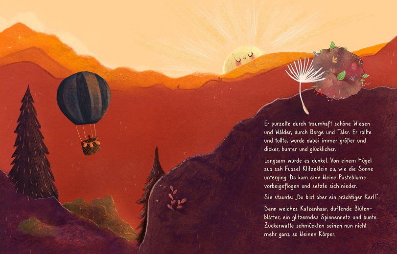 Auf einer kratzigen, alten Wolldecke lebte eine große Fusselfamilie. Die Fussel sahen alle gleich aus und waren furchtbar träge. Sie lebten tagein, tagaus ihr gewöhnliches Fusselleben. Jeder Tag verlief gleich und nie passierte etwas. Sie hingen an der Wolldecke, glotzten durch die Gegend und bewegten sich kein bisschen. Das war ziemlich langweilig – und ziemlich schön, fanden die Fussel! Nur ein kleiner Fussel, ein wirklich klitzekleiner, war anders als die anderen. Denn er träumte von spannenden Abenteuern und erklärte: „Ich will die Welt entdecken!“ Doch die anderen Fussel warnten: „Klitzeklein, das ist viel zu gefährlich! Denk an all die Gefahren, die dort unten lauern. Kratzekatzen haben kleine Fussel wie dich zum Fressen gern. Und erinnerst du dich nicht an den großen, bösen Staubsauger?“ Klitzeklein erschauderte. Einmal hatte sich das schreckliche Ding an Fusseltante Berta festgesaugt. Sie konnte erst im allerletzten Moment gerettet werden. „Sei kein Dussel, kleiner Fussel!“ Alle nickten und redeten solange auf Klitzeklein ein, bis er ganz ängstlich und nachdenklich wurde. Vielleicht hatten sie ja recht? Eines Nachts wachte Klitzeklein auf. Durch die Fensterscheibe sah er den Nachthimmel. Der große, runde Mond leuchtete und tausende kleine Glitzersterne funkelten. Und dann geschah es: Ein besonders heller Stern sauste strahlend durch die Nacht und fiel vom Himmel herab. Der kleine Fussel hatte die Langeweile satt. „Da draußen ist es doch viel spannender als hier oben auf der Decke“, dachte er sich. Und so erfasste ihn ein Mutausbruch!