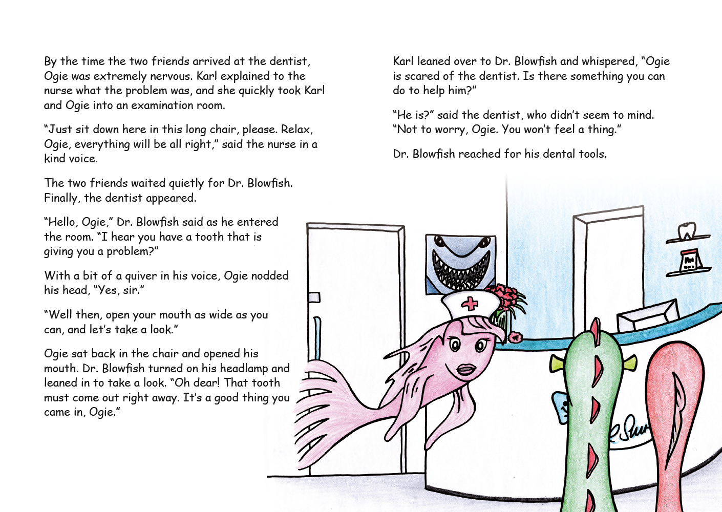 Karl Kokanee findet seinen Freund Ogie, das Seeungeheuer Ogopogo, mit starken Zahnschmerzen im Bett. Er ist ziemlich überrascht, als er erfährt, dass sein großer Freund Angst vor dem Zahnarzt hat. Natürlich hilft er Ogie, der alles dafür tut, um bloß den Besuch zu vermeiden. Dabei kommen die beiden Freunde auf wahnwitzige Ideen...aber ob das hilft?