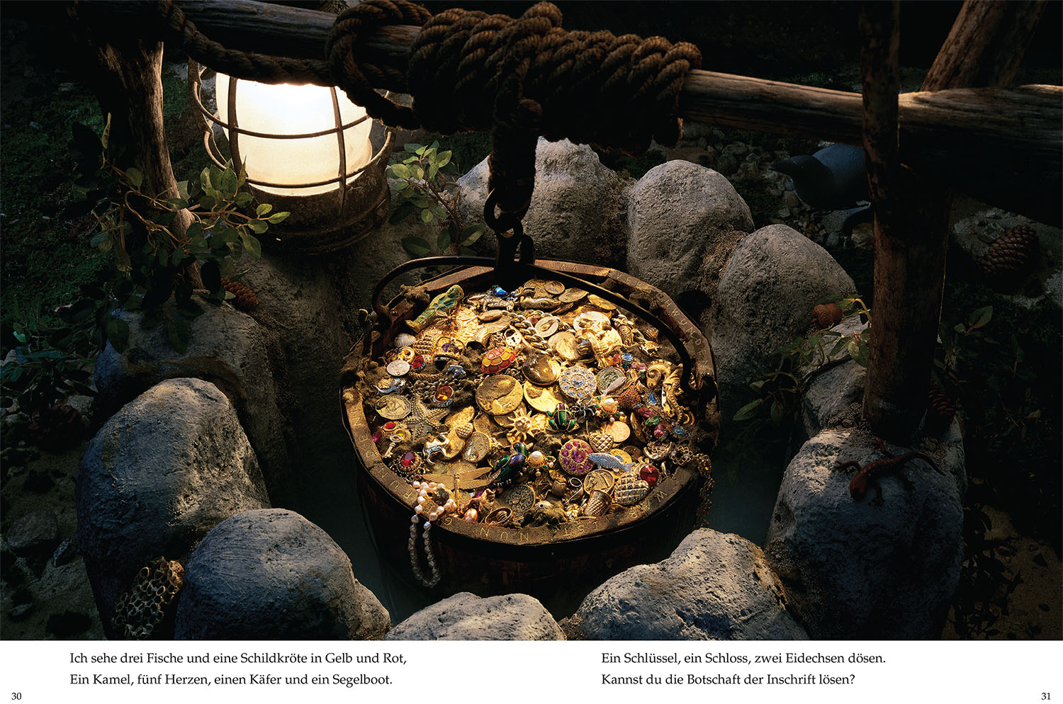 Kleine Schatzsucher können in der alten Piratenbucht so mancherlei entdecken. Vielleicht einen blauen Wal? Oder einen Stern aus Gold? Nur wer ganz genau hinschaut, wird auch den kostbaren Schatz der Piraten finden. Fantasievolle Suchbilder mit Liebe zum Detail und Rätsel in Reimform laden zu immer neuen Entdeckungen ein.