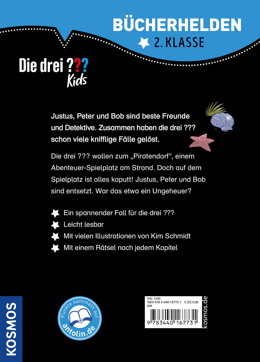 Justus, Peter und Bob sind beste Freunde und Detektive! Zusammen haben die drei ??? schon viele knifflige Fälle gelöst.Ein Ungeheuer soll den neuen Strandspielplatz verwüstet haben. Die drei ??? Kids können die Geschichte kaum glauben.Lesen lernen ist schwer? Nicht mit dieser spannenden Geschichte, die auch Leseanfänger ab Klassenstufe 2 leicht bewältigen können. Illustrationen und ein Leserätsel am Ende jedes Kapitels machen den Band abwechslungsreich, sorgen für Erfolgserlebnisse und erhöhen die Lesemotivation. So macht der Einstieg ins selbstständige Bücherlesen einfach Spaß.