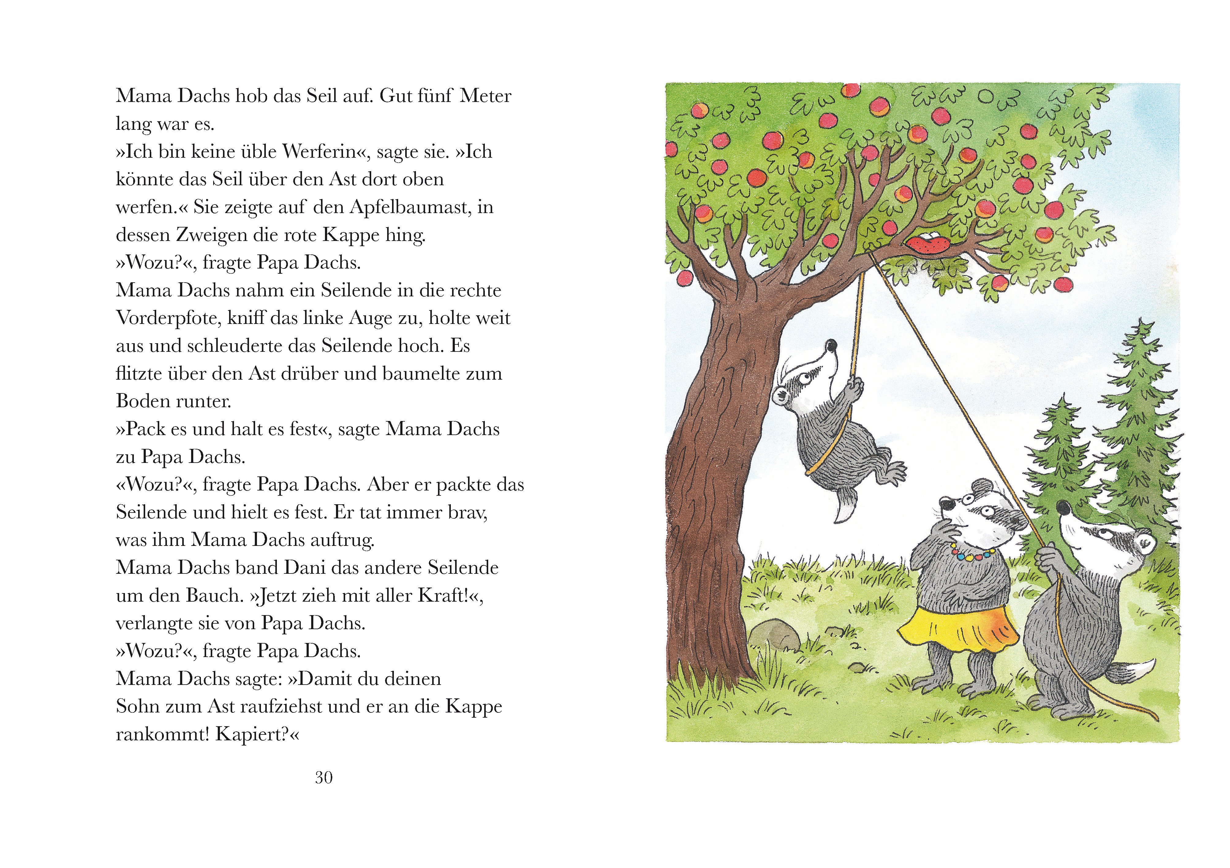 »Dani Dachs kam mit allen Kindern im Wald gut aus. Nur mit Hubs Hase nicht. Der war richtig gemein zu ihm. Rief gestreifter Fettsack und aufgepumpter Igel hinter ihm her, warf Tannenzapfen nach ihm und trat ihm im Vorbeirennen in den Po. Dabei hatte ihm Dani Dachs nie etwas getan ... «