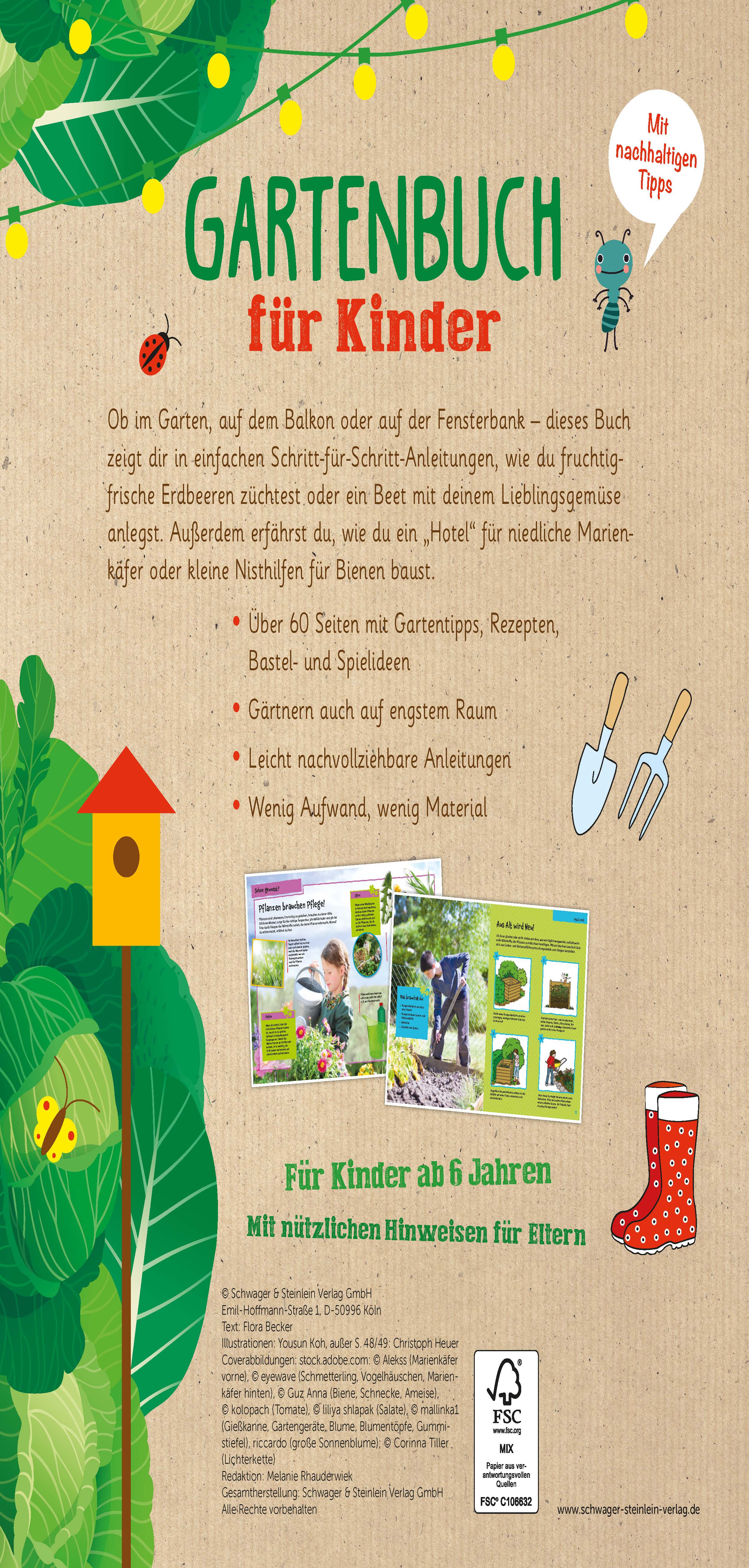 Ob im Garten, auf dem Balkon oder auf der Fensterbank - dieses Buch zeigt dir in einfachen Schritt-für-Schritt-Anleitungen, wie du fruchtig-frische Erdbeeren züchtest, ein Beet mit deinem Lieblingsgemüse anlegst und ein Bienenhotel baust. Hier ist alles zu finden, was zum Gärtnern gebraucht wird: passende Ausrüstung, richtiger Dünger, besondere Pflegetipps und vieles mehr. Ob Apfelbaum, Möhren-Zwiebelbeet, Kräuterschnecke oder Eimerkartoffeln, für jede Gartengröße ist etwas dabei. Zusätzlich bietet dieses Buch für Kinder tolle Ideen für Rezepte und Spiele rund ums Thema Gärtnern. Hinweise für Eltern ergänzen die Tipps, die auch das Thema Nachhaltigkeit berücksichtigen und so bereits im Kindesalter ein Umweltbewusstsein vermitteln und stärken.