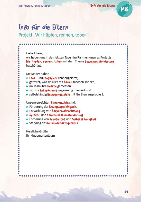 Rennen, klettern, toben - Kinder müssen sich bewegen! Doch auch Entspannungsphasen dürfen nicht fehlen. Stimmt das Gleichgewicht zwischen Bewegung und Ruheinseln im turbulenten Kita-Alltag sind die Kinder ausgeglichen und können sich den kleinen und großen Abenteuern des Tages stellen. Bei den Projekten in diesem Buch lernen die Kinder daher verschiedenste Bewegungsspiele und Entspannungsideen kennen. Spielerisch lernen sie sich und ihren Körper besser kennen, trainieren ihre Motorik und erfahren, wie sie sich auch wieder entspannen können. Fertig vorbereitete Wochenpläne bieten Orientierung und lassen dennoch viel Platz für eigene Ideen - planen Sie ganz individuelle Projekte nach den Bedürfnissen der Kinder! Mit dabei: -Bewegungs- und Körperwahrnehmungsspiele-Traumreisen, Fantasiegeschichten und Massagen-Ruheinseltipps für den Gruppenraum-Mandalas und viele weiter Kreativideen -Spezielle Bewegungsideen für einen starken Rücken
