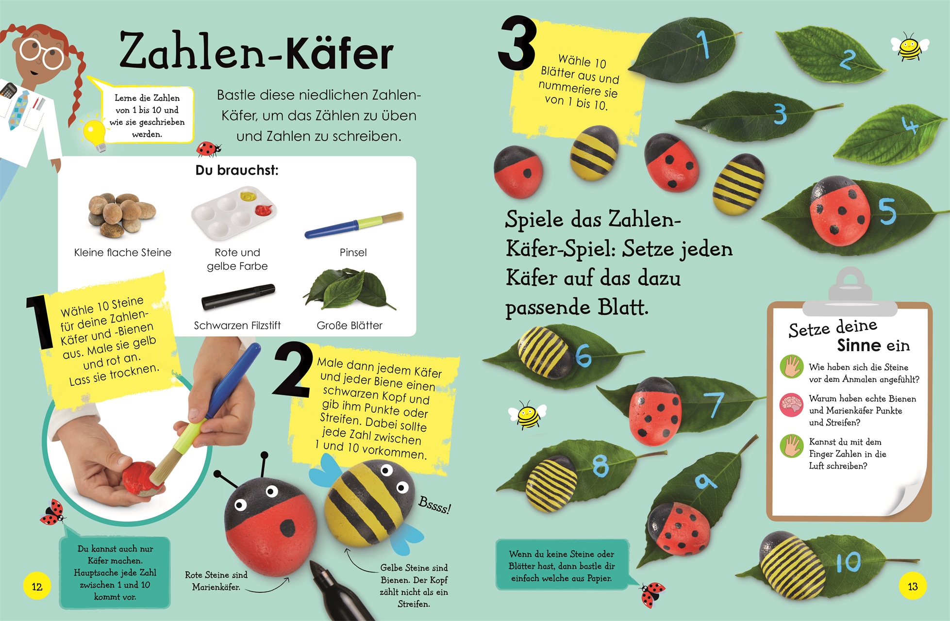 Willkommen in der bunten Welt der Zahlen! Mit witzigen Zahlenspielen weckt dieses originelle Kinderbuch die Neugier cleverer Köpfe ab 4 Jahren. Mit bemalten Käfern wird das Zählen gelernt, ein selbst gebastelter Roboter hilft beim Plus-Rechnen: Spielerisch Mathe lernen ganz ohne Stift & Papier dafür mit umso mehr Spaß & Kreativität! Die Mathe-Übungen zum Basteln schulen außerdem ganz nebenbei die motorischen Fähigkeiten!