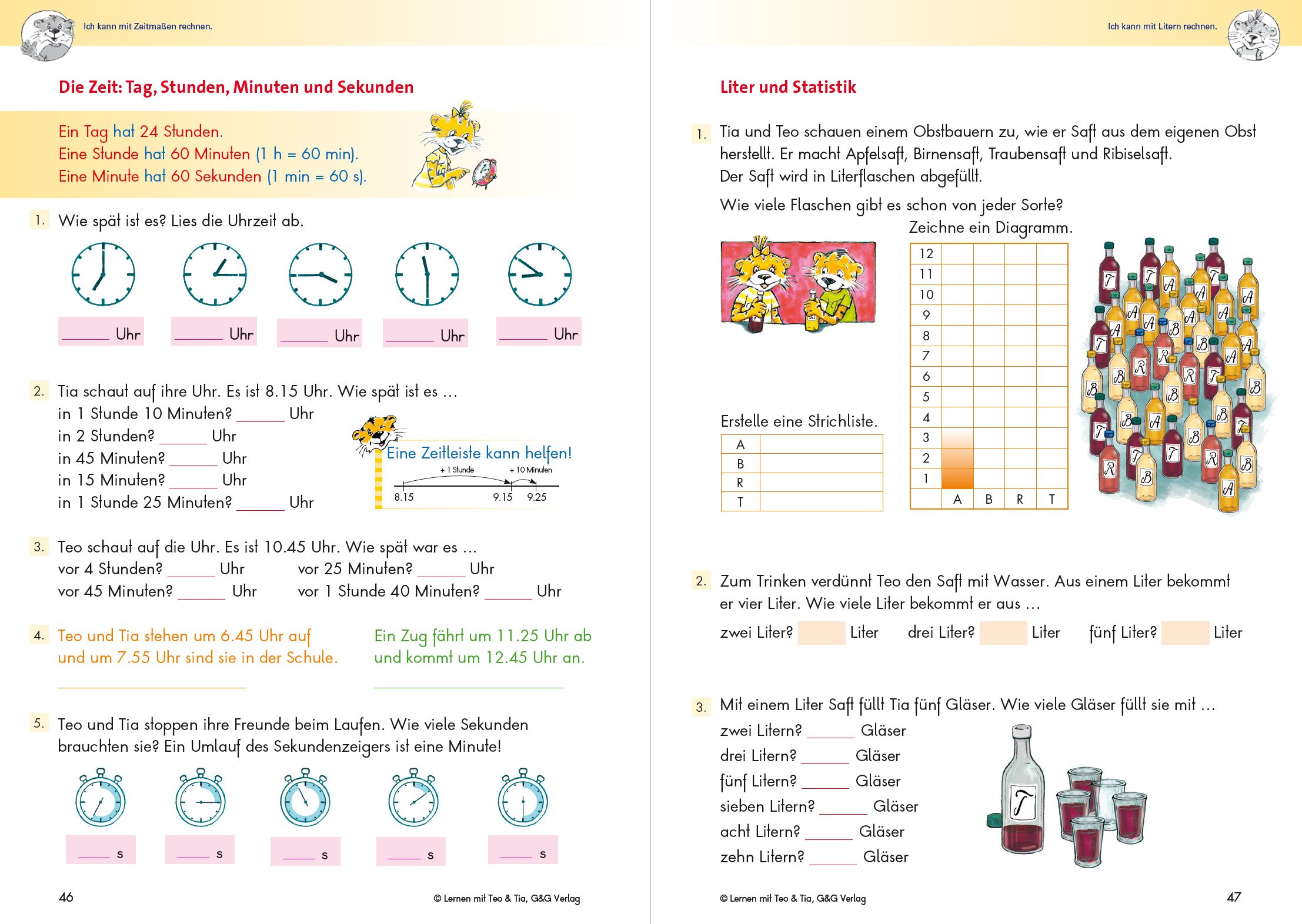 "Lernen mit Teo und Tia - Mathematik 2" ermöglicht ein gezieltes und effektives Training ab der 2. Klasse Volksschule. Die systematisch aufgebauten Übungen helfen, ein grundlegendes Verständnis für die Mathematik zu bekommen, Zusammenhänge zu verstehen und eigene Lösungswege zu finden. Ganz nach dem Motto: Weiß das Kind über Zahlen, Größen und Formen Bescheid, dann fällt Mathematik leicht! Schwerpunkte - Erarbeitung der Zahlen bis 100 - Stellenwertverständnis - Plus- und Minusaufgaben im Zahlenraum 100 - Grundvorstellungen zum Malnehmen - das kleine Einmaleins - Geometrie - Spiegelfiguren - Symmetrie - Größen: Längenmaße, Gewichtsmaße, Zeitmaße, Liter - Unser Geld: Euro und Cent - Sachaufgaben - Statistik